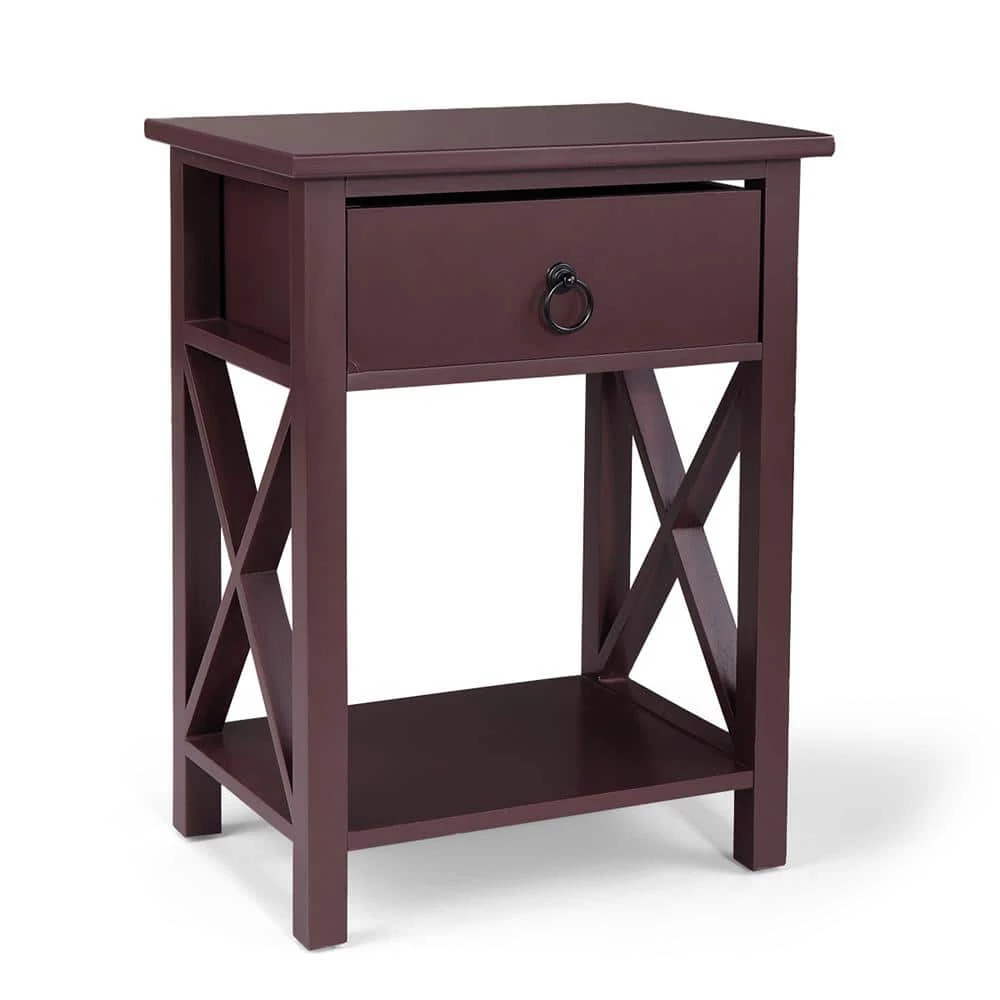 This nightstand features a clean-lined silhouette and X-shaped sides, adding a modern touch to your bedroom, living room, bathroom and office. The spacious drawer with a metal handle hides your items to keep away from dust. The bottom open shelf also offers extra space to place your storage basket. Made of premium MDF board sprayed with stain-proof coating, this side table is sturdy, wear-resistant and waterproof. Just use a damp cloth to clean.