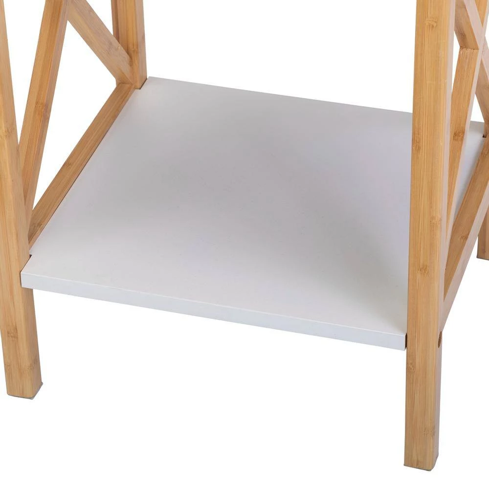 Featuring a popular X-shape style. the 2-tone nightstand with a drawer and shelf can serve as a sofa side table in living rooms and offices, or as a bedside table in bedrooms. Made from MDF and bamboo, the side table is strong and stable to support a maximum weight of 44 lbs. The drawer can hold up to 22 lbs. Designed with a smooth tabletop, pull-out drawer, and a bottom shelf, the end table is ideal to display your lamps/books/plants and keep your personal items dust-proof inside. Main Color:Golden White.