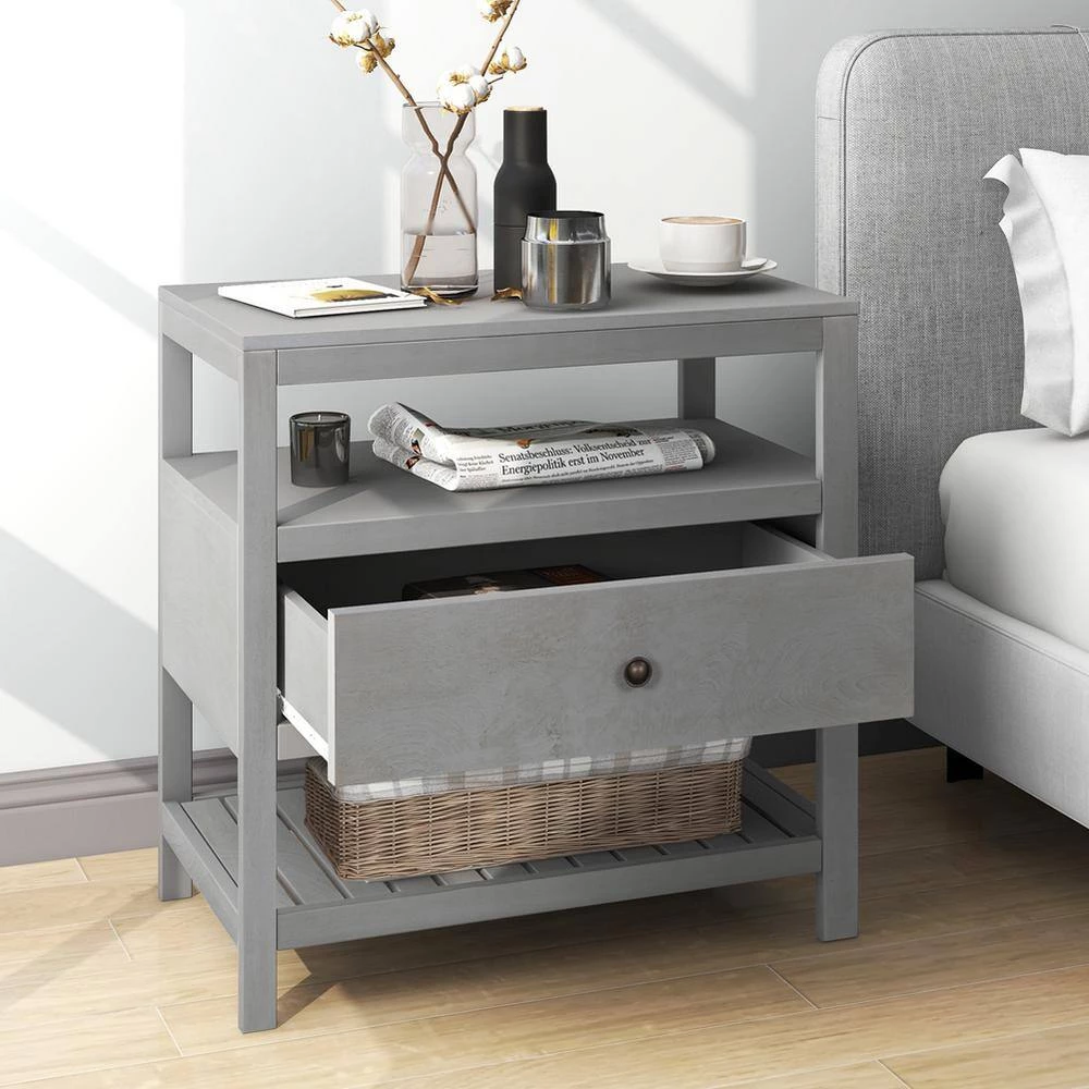 1-Drawer Gray Nightstand(25.2 in. H x 26 in. W x 15 in. D) by ATHMILE -ATHMILE Sales Store gray athmile nightstands dztwf281117aae e1 1000