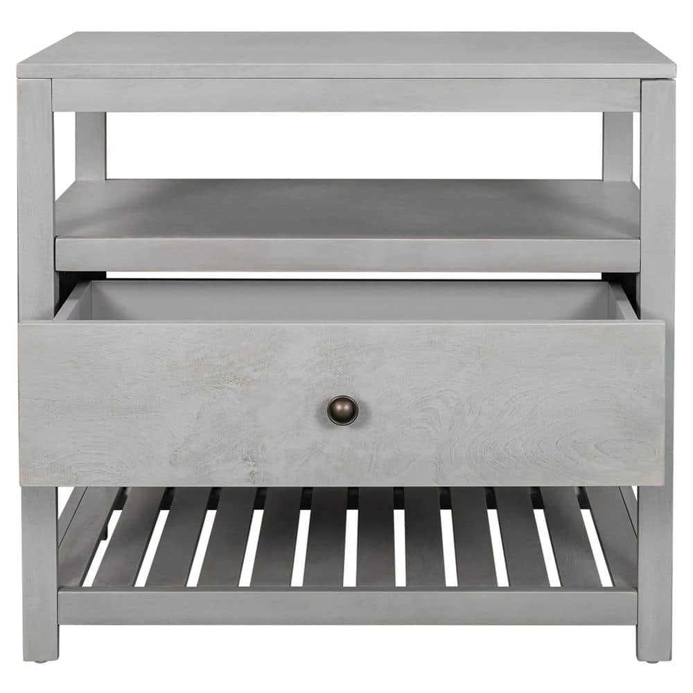 1-Drawer Gray Nightstand(25.2 in. H x 26 in. W x 15 in. D) by ATHMILE