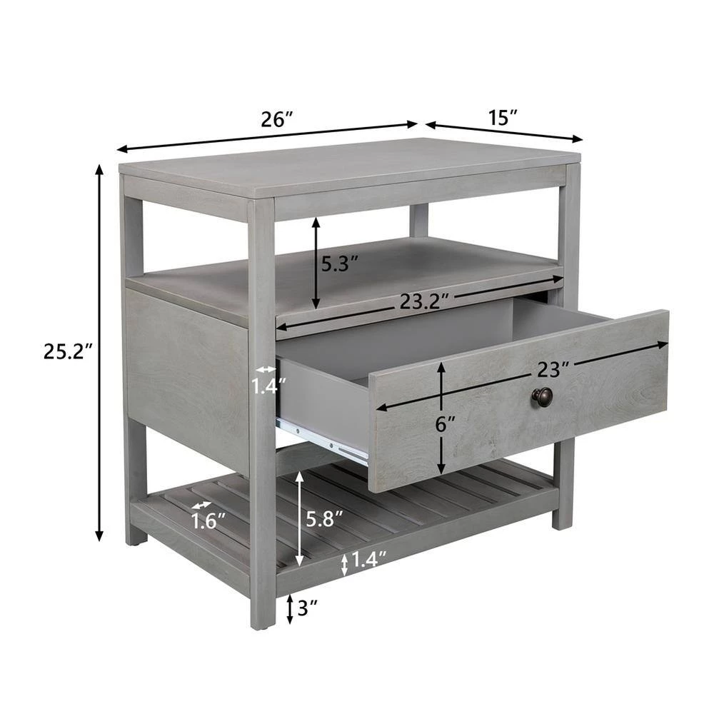 1-Drawer Gray Nightstand(25.2 in. H x 26 in. W x 15 in. D) by ATHMILE - Image 2