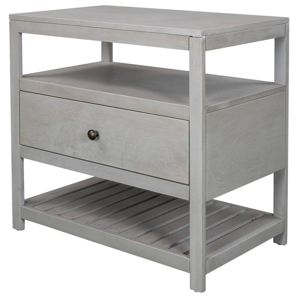 Bring streamlined style to your bed’s side with this nightstand. This nightstand strikes a clean-lined rectangular silhouette. Set on smooth-operating drawer glides, one drawer with a handle offers out-of-sight storage for bedside essentials, while the nightstand’s top surface provides a perfect platform for a phone charger and a stylish lamp. An open lower shelf is a great spot for books. It won’t overwhelm your space.