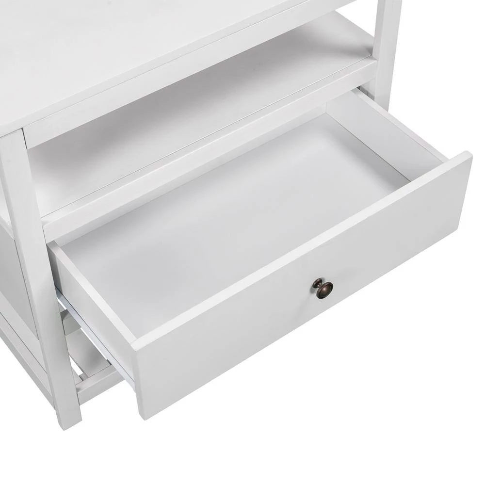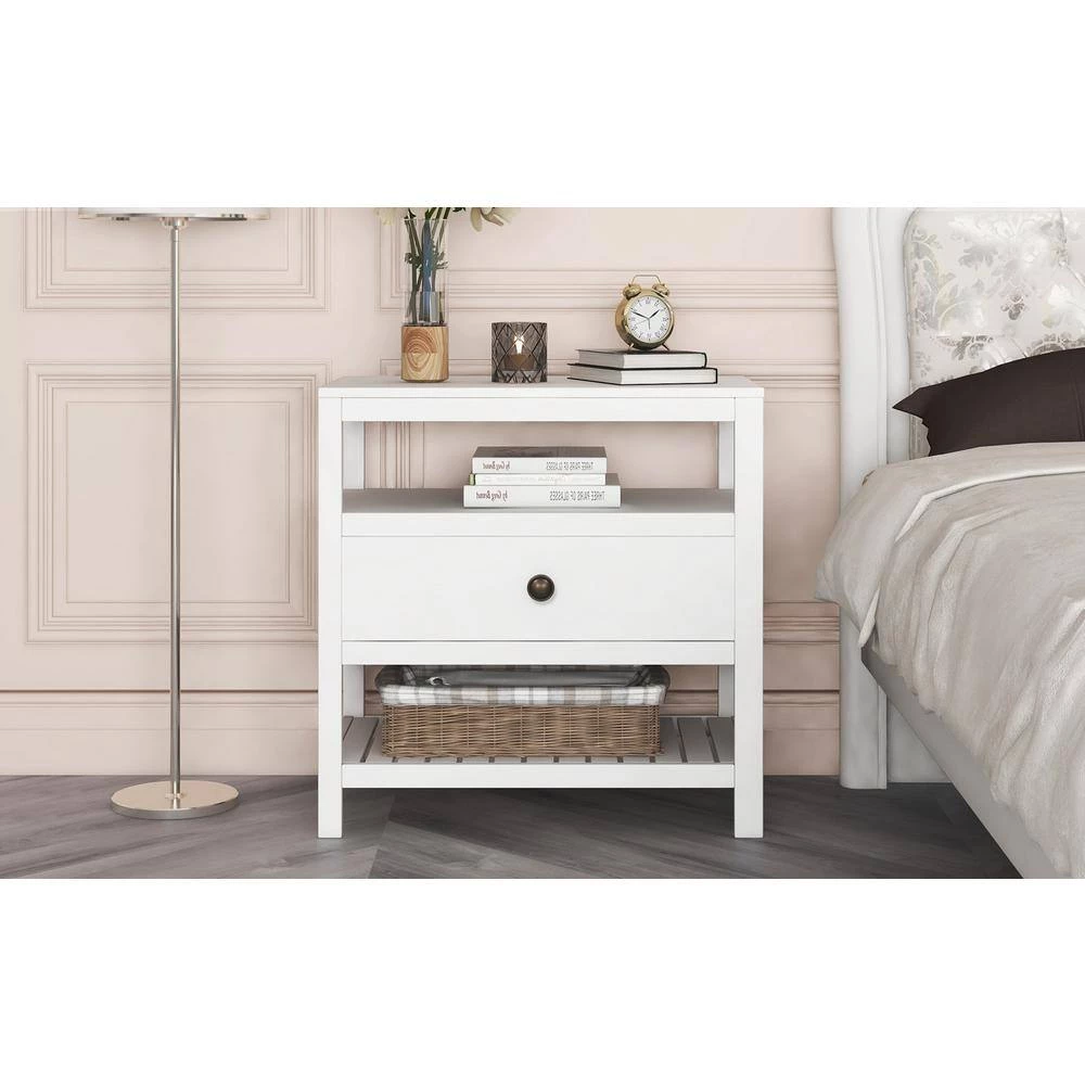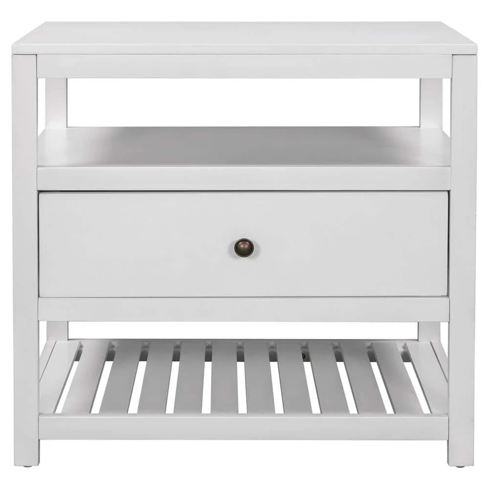 Bring streamlined style to your bed’s side with this nightstand. This nightstand strikes a clean-lined rectangular silhouette. Set on smooth-operating drawer glides, one drawer with a handle offers out-of-sight storage for bedside essentials, while the nightstand’s top surface provides a perfect platform for a phone charger and a stylish lamp. An open lower shelf is a great spot for books. It won’t overwhelm your space.