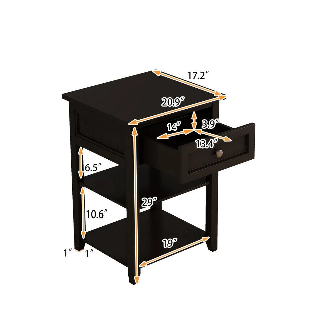 Create the prefect living room space with this nightstand. This end table will sit perfectly next to your chair or sofa and both beautiful and functional. Featuring two open shelves makes a marvelous spot to put daily necessities. Built-in drawers can also be used for storage.This storage end table is easy assembly with step by step instruction.