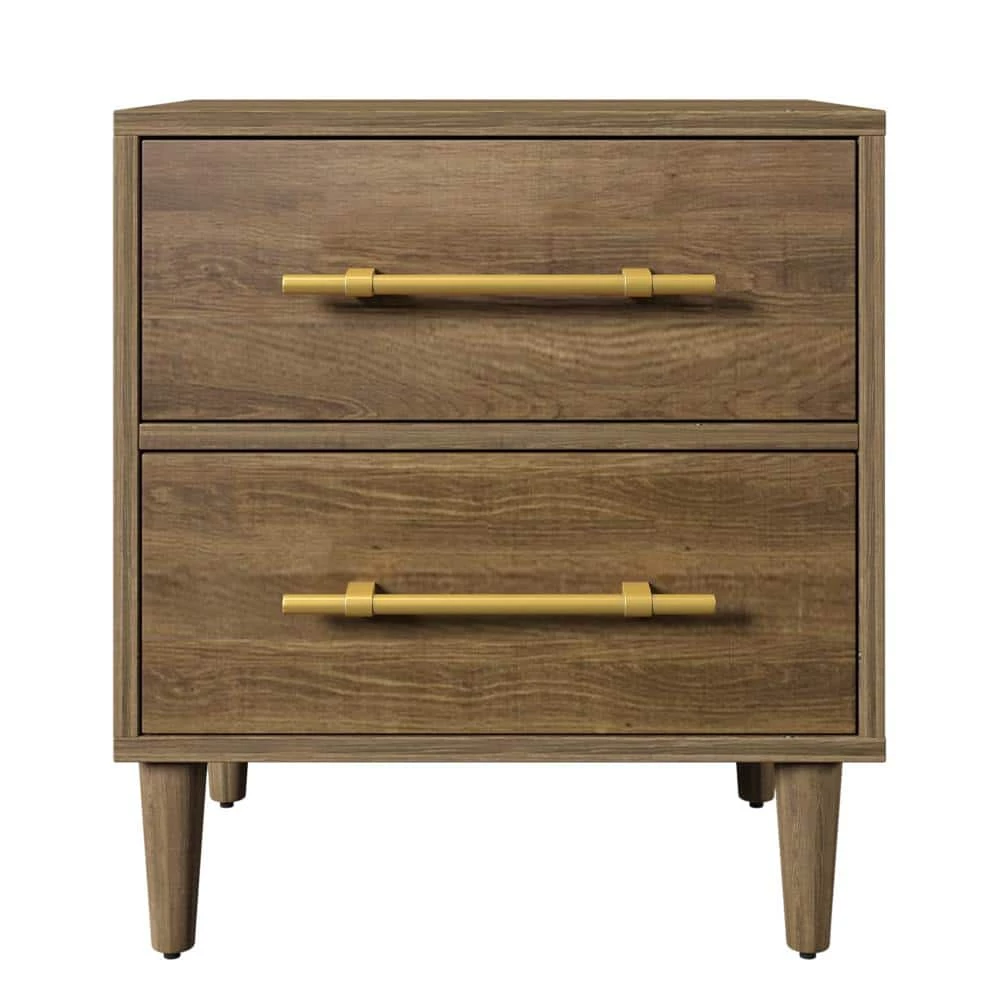 With a sturdy tapered leg foundation for a mid-century modern aesthetic, this nightstand is constructed from reliable solid wood legs and veneer to ensure the safety of all your belongings. The nightstand are constructed with clean-line features and enormous storage spaces to keep youraccessories, and more. With a natural walnut finish, this endtable can suit your home’s furniture with any color scheme.