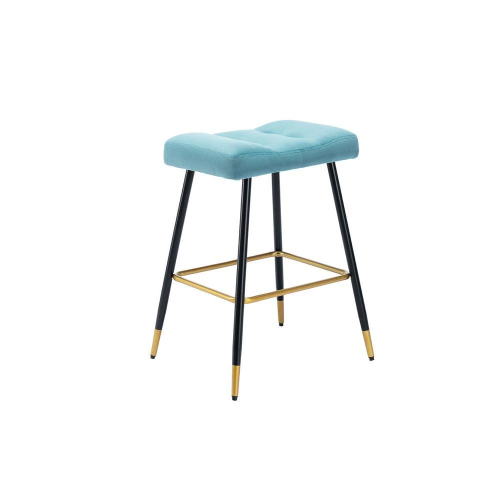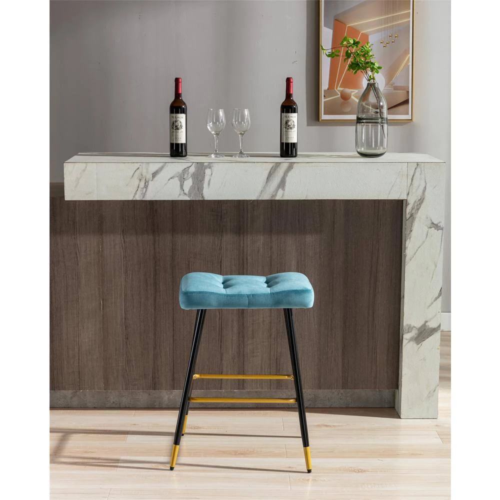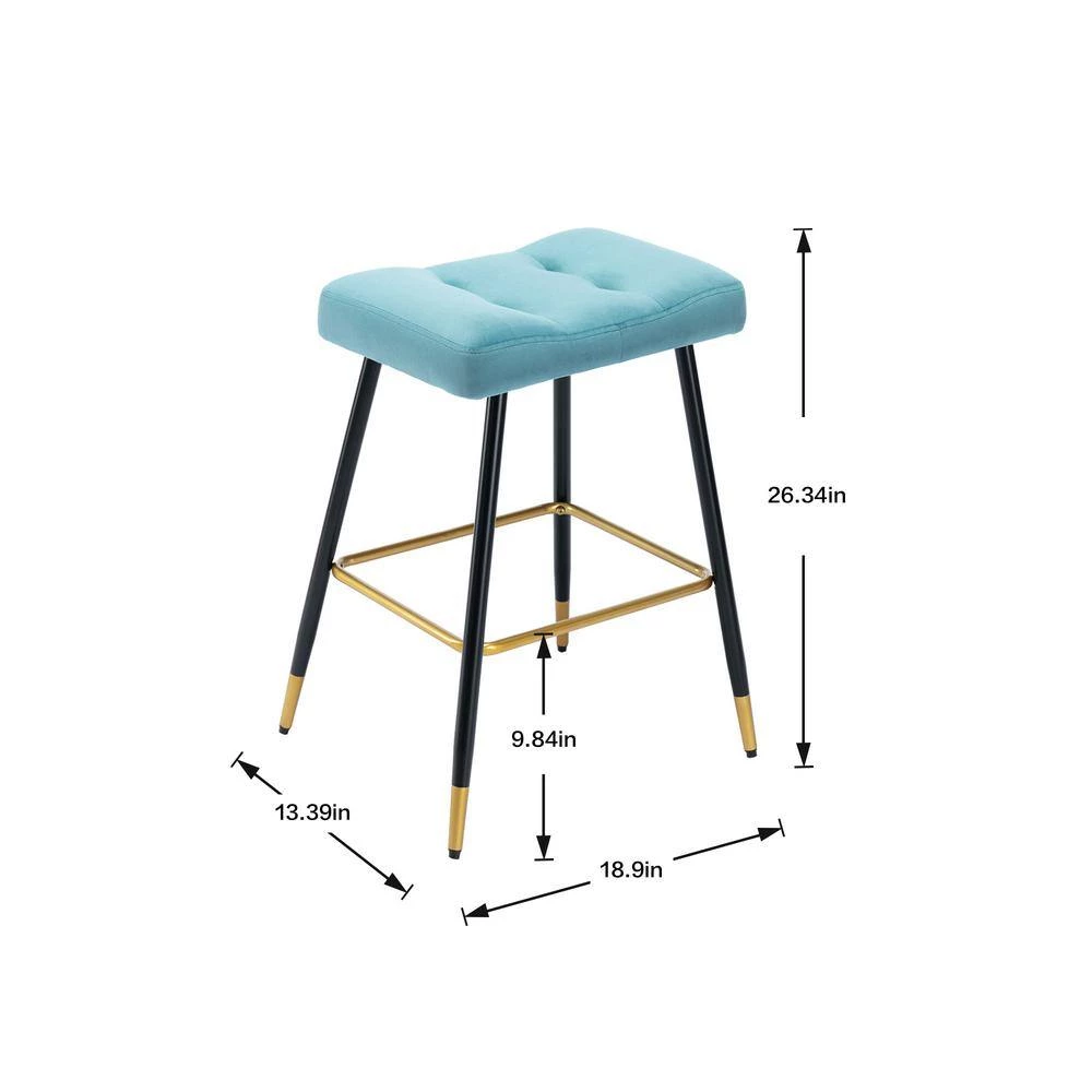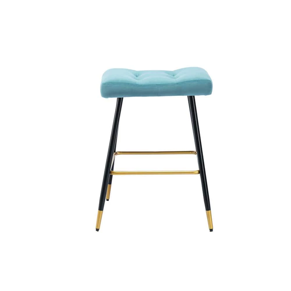 26.34 in. Blue Backless Metal Frame Bar Stool with Velvet Seat (Set of 1) by ATHMILE