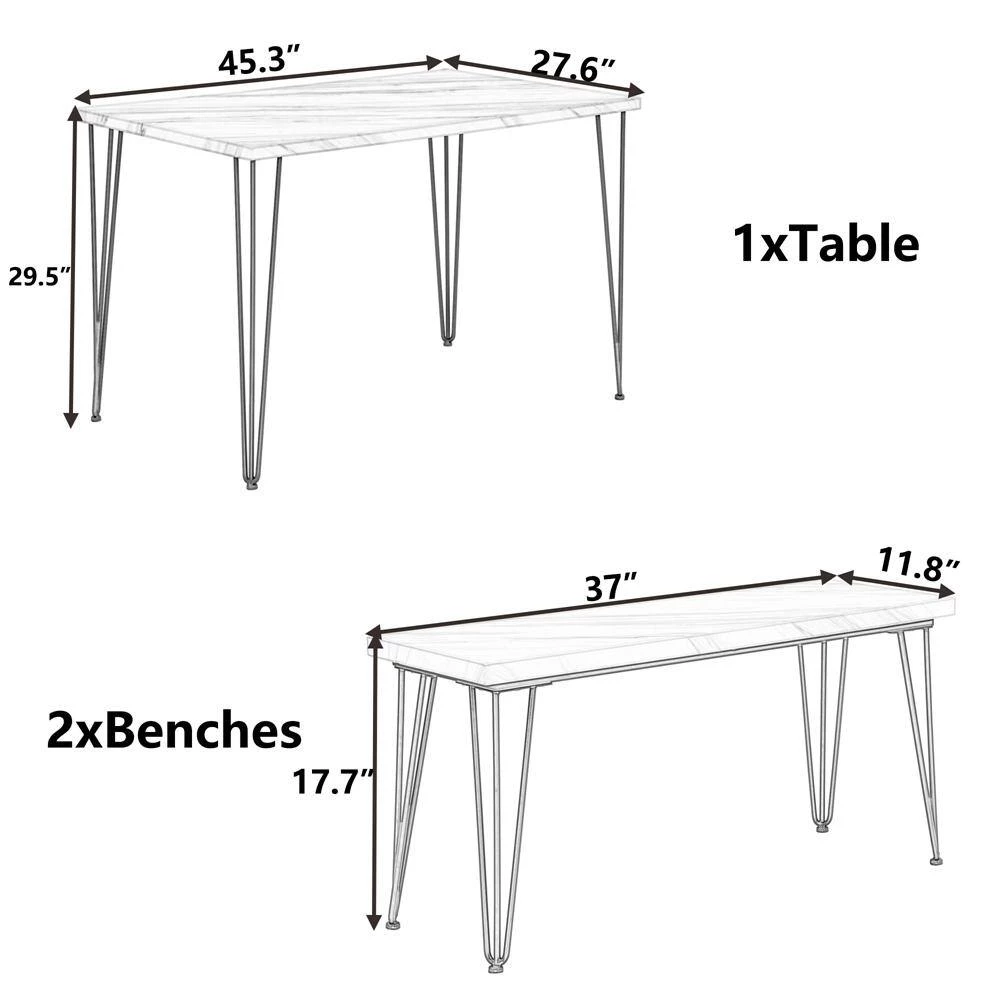 - Table:45.3×27.6×29.5in.(LXWXH);Bench:37×11.8×17.7in.(LXWXH). Table/Bench Top Thickness:1.2in.. 12-Warranty.