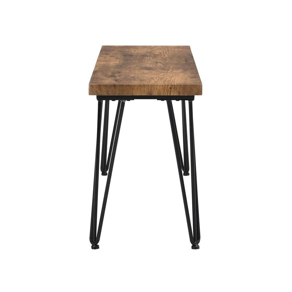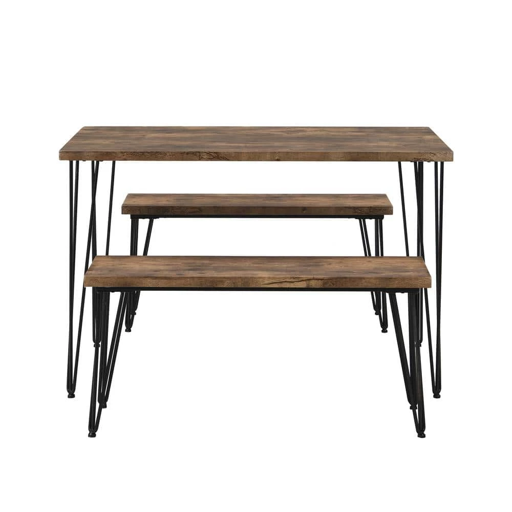 Made of high quality steel frame and MDF panels,this dining table set comes with 1-large rectangular table and 2-long benches. Compared with others, our special designed hairpin legs are solid and come with soft pads which makes the table set more stable but will not scratch the floor. This dining set will be an eye-catching one in your home with its rustic appearance.