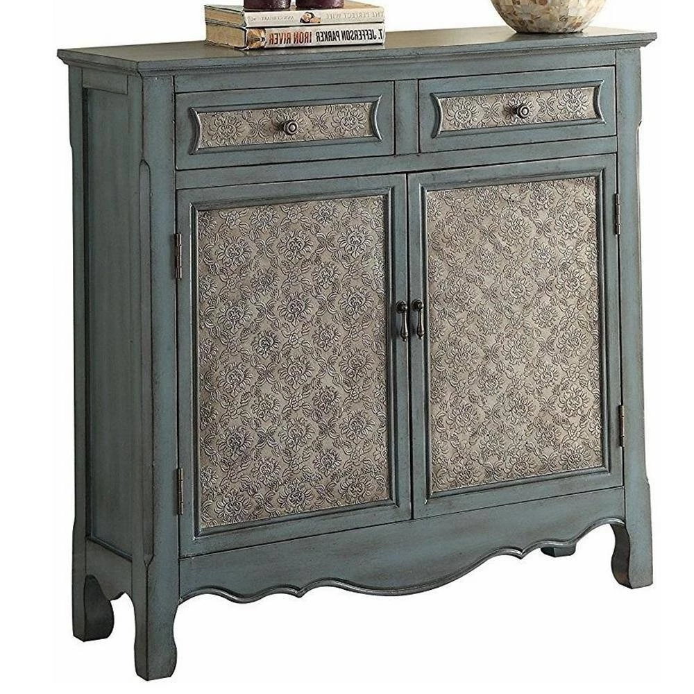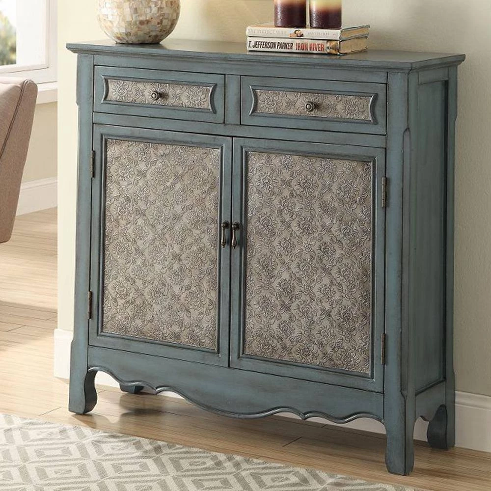 The W in. ell console tables in antique blue will be perfect additions to any vintage home.Decor. Not only great in design, these occasional pieces also provides spacious storage function with drawers and cabinets. Available in shutter doors or patterned front doors.