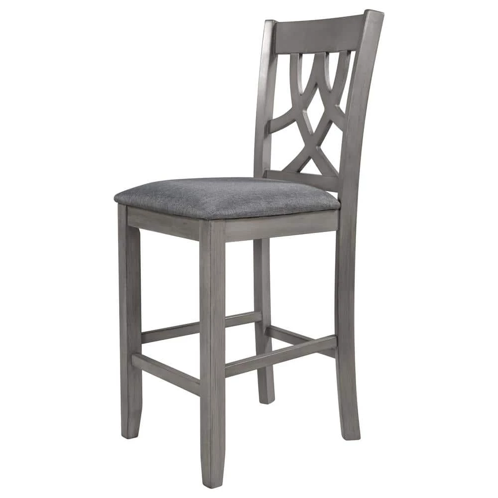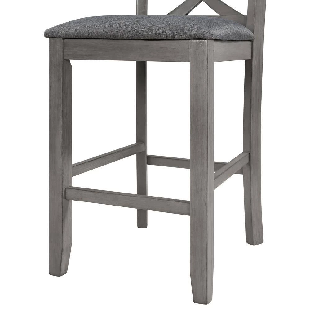 This Farmhouse 2-piece Padded Round Counter Height Kitchen Dining Chairs with Cross Back for Small Places.Built with traditional cross back, this dining set provides a tasteful air of charm to your dining room. Refreshing brown color gives your space a minimalist aesthetic.