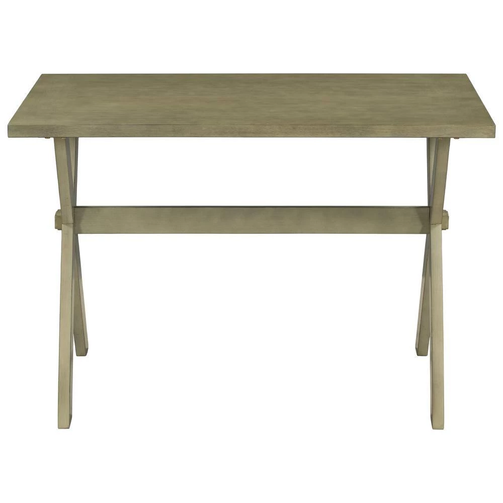 Come with 1-classical rectangular table, this dining table is built with creative cross legs,which provides a tasteful air of charm and extra support to your dining room. Freshing gray green color gives your space a refined aesthetic.With stardard height, chairs and benches can be stacked under table when not in use to save space. Featuring with creative green coating, this kitchen dining will bring a bold but fresh presence to any dining room.