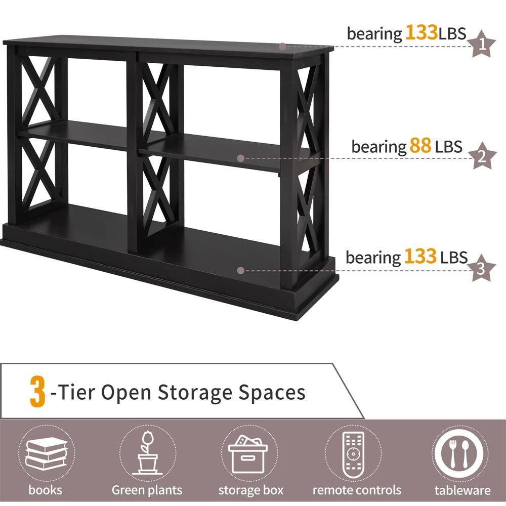 - This chic sofa table with open shelf is a versatile accent that works anywhere in homes-from the entryway wall to the back of a living room sofa, to the empty spaces in office. Great ideal as a console table, hallway table, entry table, entryway shelf or even works as a TV stand.