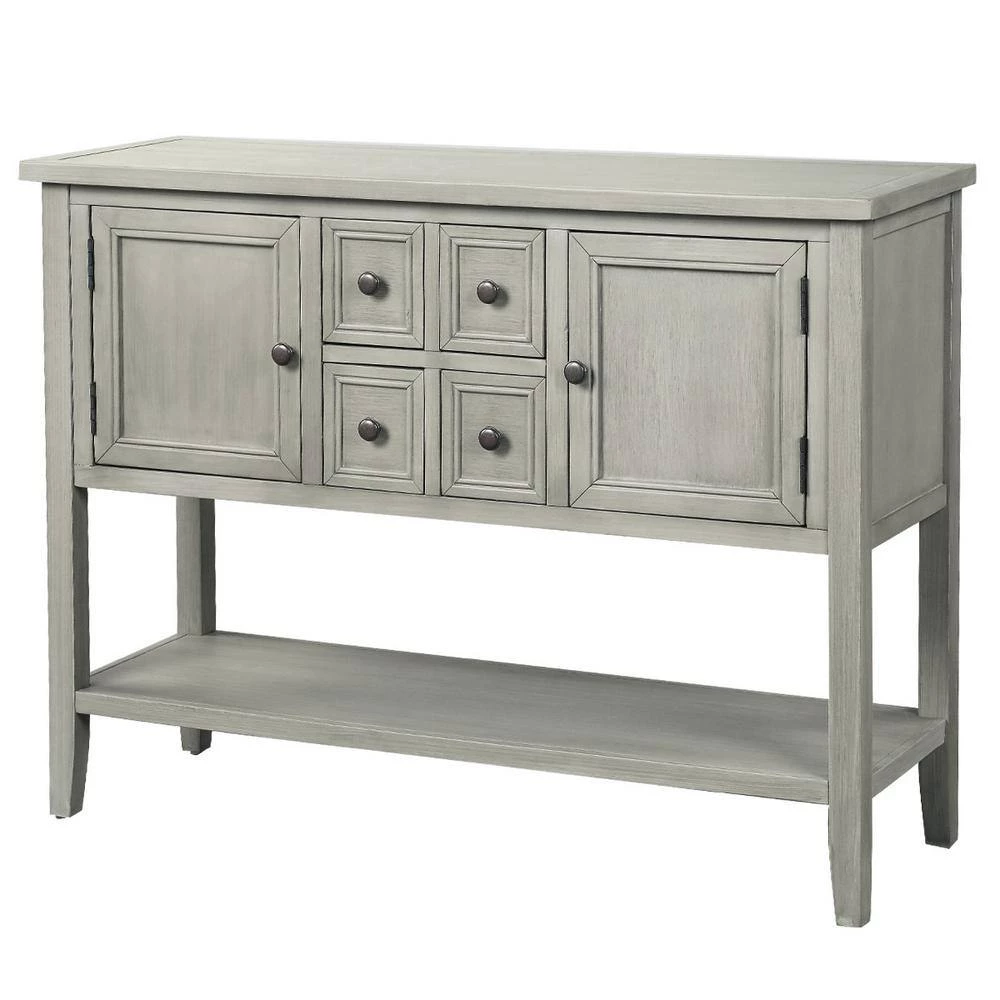 - Sideboard table comes complete with four storage drawers, two cabinets and bottom shelf