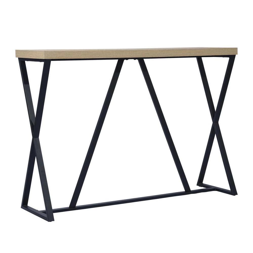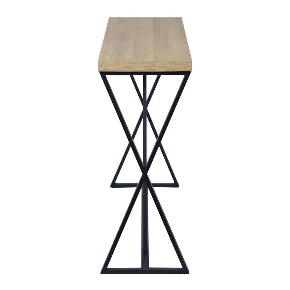 This sofa console table adds a simple yet stylish element to your living space. It is constructed with a black metal frame for durability and strength, with a chartered oak veneer on all sides. This sideboard table is perfect for placing houseplants, decorations, framed pictures or other small items on it.