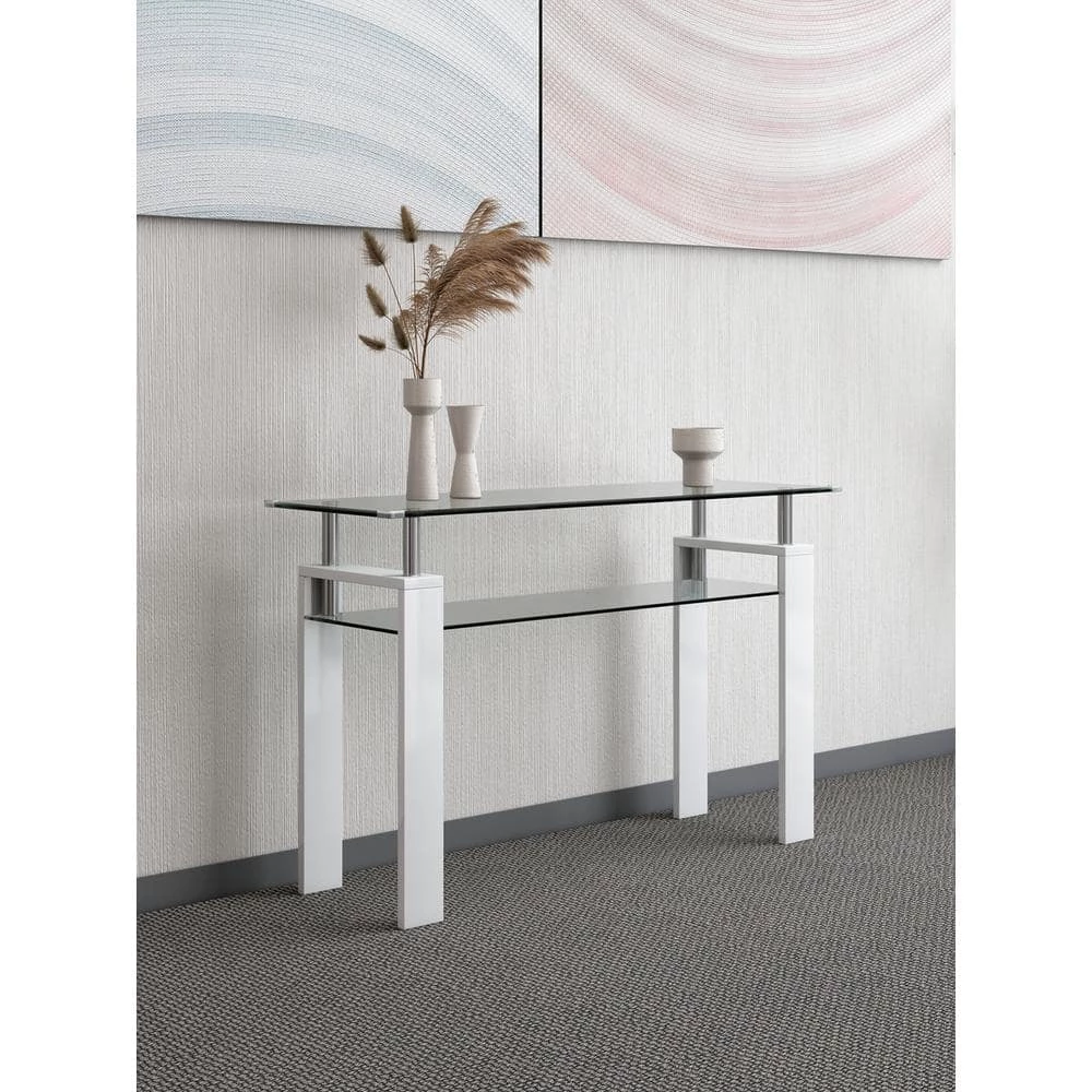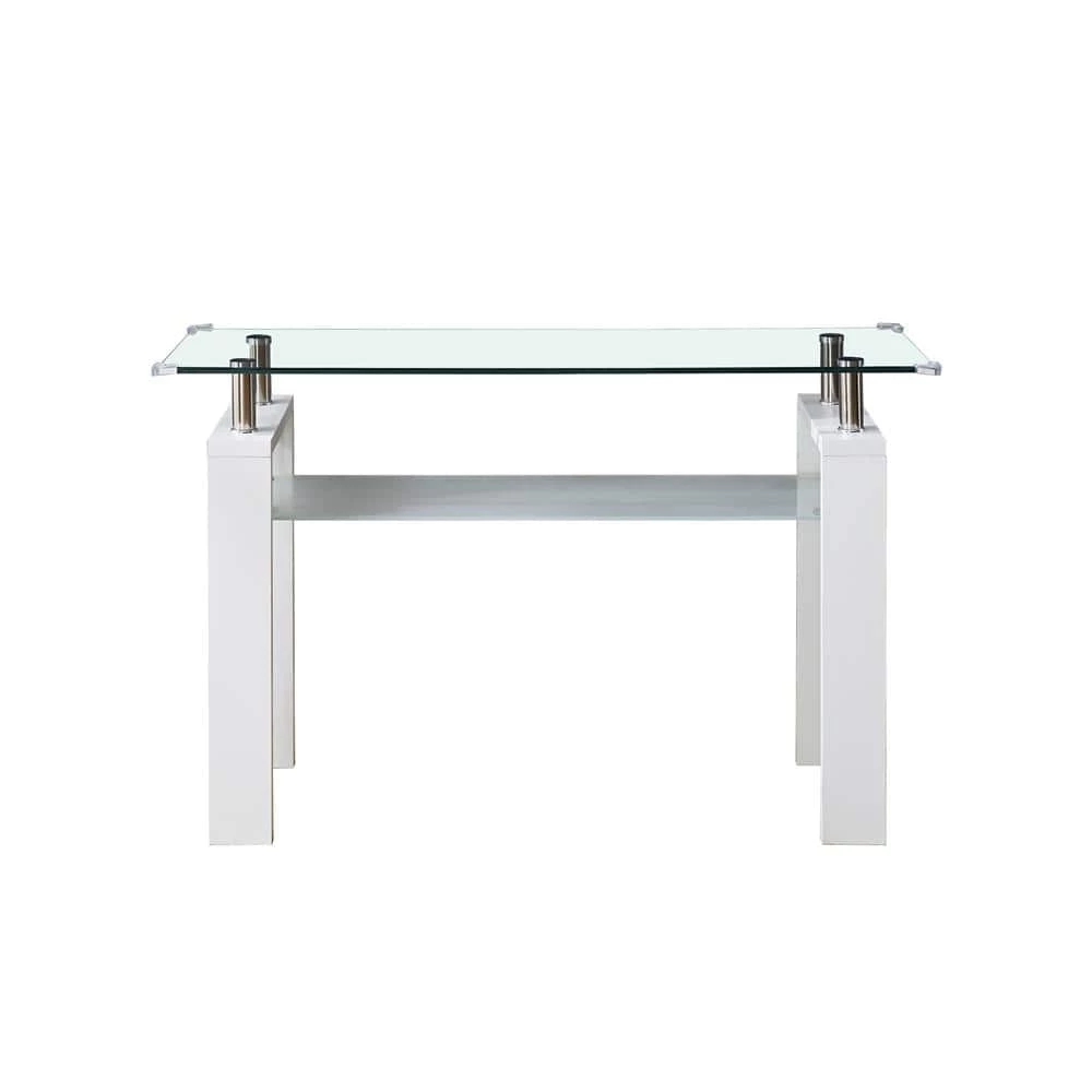 Simplistic, yet elegant, this sleek console table would be a brilliant addition to any home. The table top is made from clear tempered glass, with a generous 47.2″ Lx15.7″ D surface allowing plenty of room. Finished in high-gloss the table legs provide sturdy support for the glass top as well as provide a modern and minimalist look.