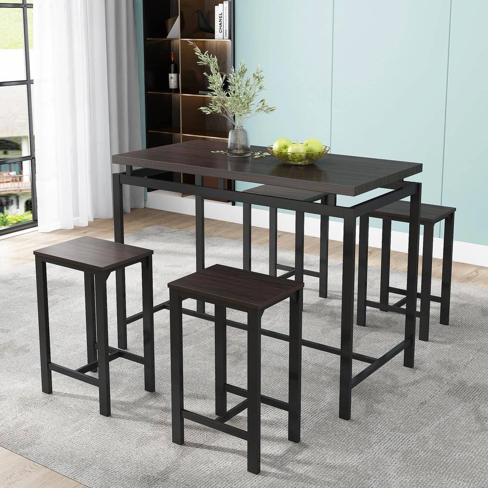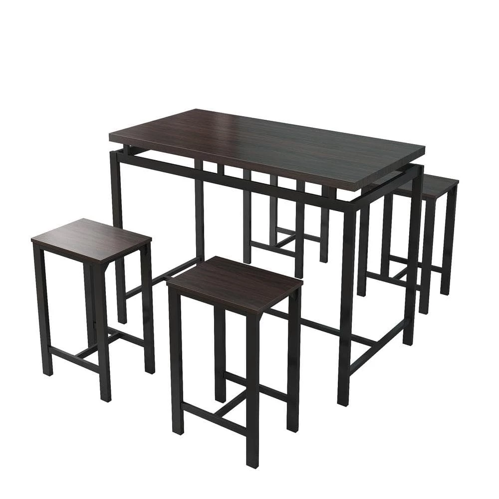 Gather friends around for craft beer flights or simply take in a quick morning meal with this five-piece pub table set, perfect for casual occasions. Crafted from manufactured wood, this set is ideal for industrial and contemporary settings with its clean lines and neutral solid finishes. Each backless stool is founded atop four legs connected by supports, able to hold up to 250 lbs. each. Some assembly is required for this product.