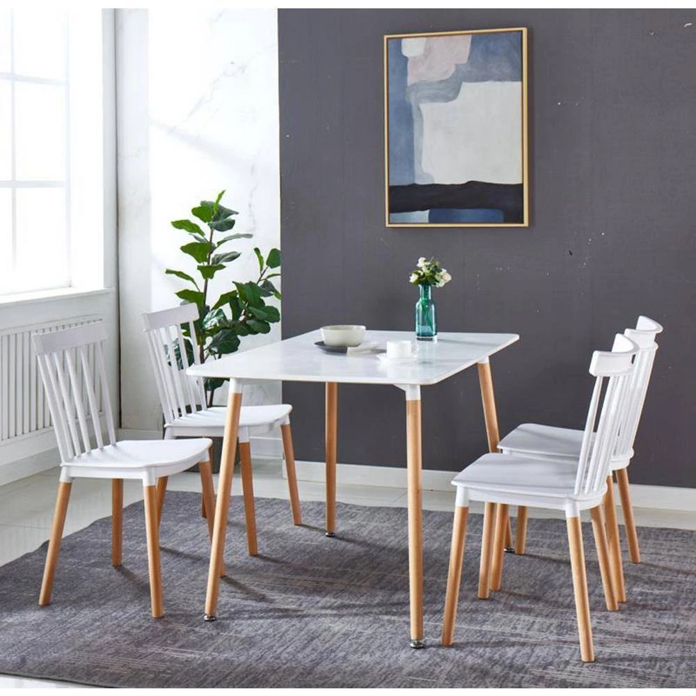 - Materials: table:MDF top,wood leg,chair:plastic,wood leg