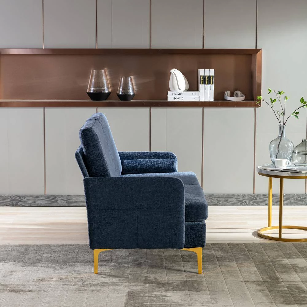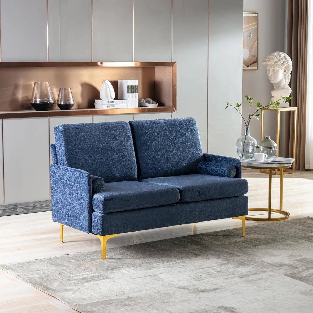 The perfect piece to reflect your tastes, this classic loveseat anchors your seating ensemble in timeless appeal. It’s made from metal and manufactured wood, and it’s built on slender, gold-polished metal legs for a luxe look. This armchair feature recessed arms and a wide back, all upholstered in Cut Pile High-grade velvet fabric in your choice of color. It’s also filled with foam to give you the right amount of support during happy hour, or while you watch your favorite movie.