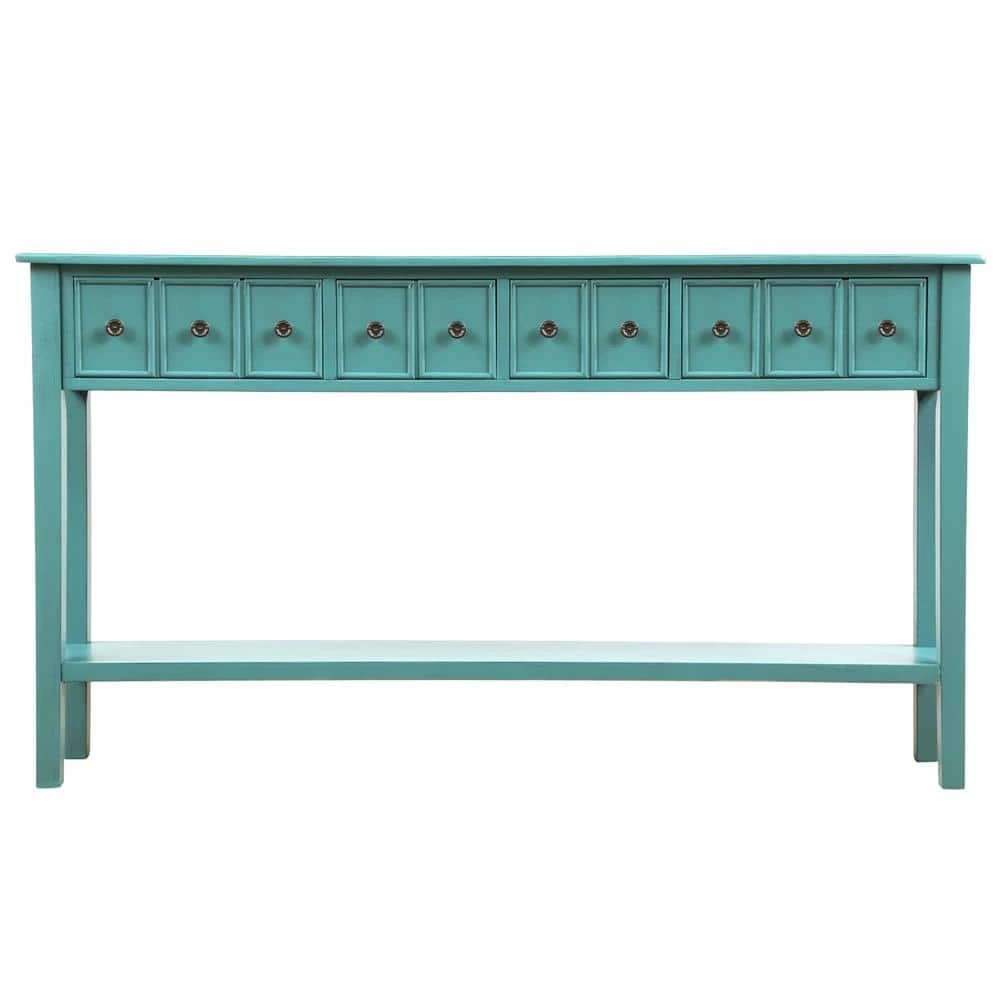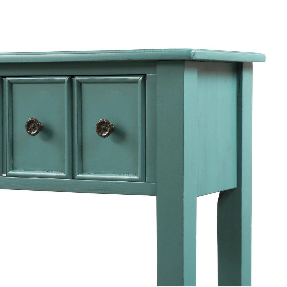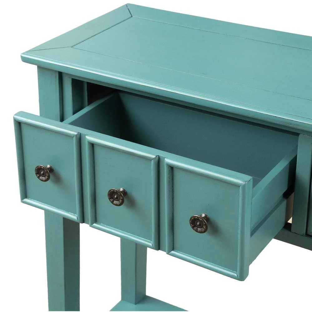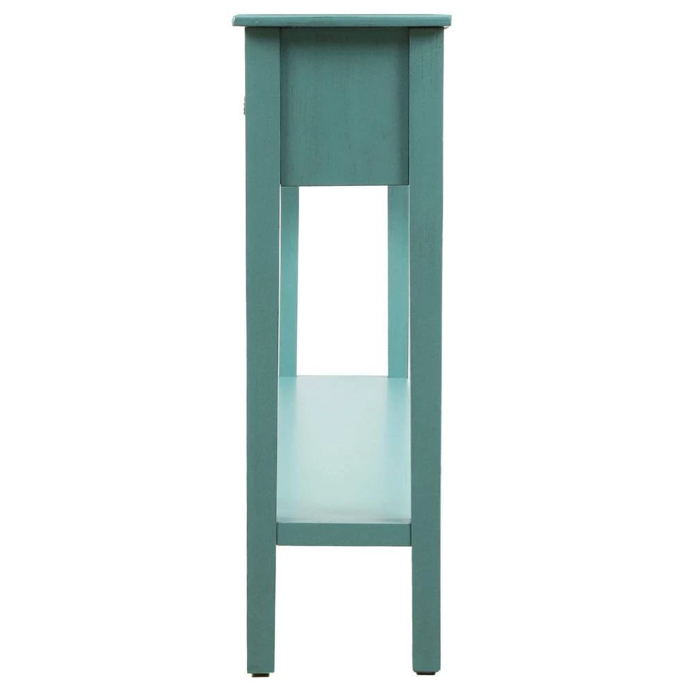 - With a frame and legs constructed of solid timber, and coated with a beautiful distressed finish, this occasional console table is reinforced in order to require low maintenance and be long-lasting and sturdy for a long time to come.