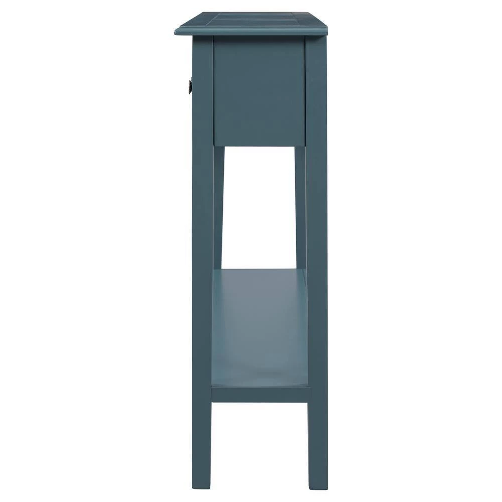 - With a frame and legs constructed of solid timber, and coated with a beautiful distressed finish, this occasional console table is reinforced in order to require low maintenance and be long-lasting and sturdy for a long time to come.