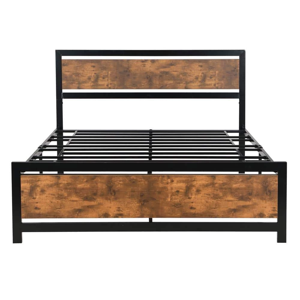 - Featuring a sleek metal design with a rectangular oak finish headboard & footboard , the Industrial style and contemporary iron metal bed creates a look that’s bold and attention-grabbing.