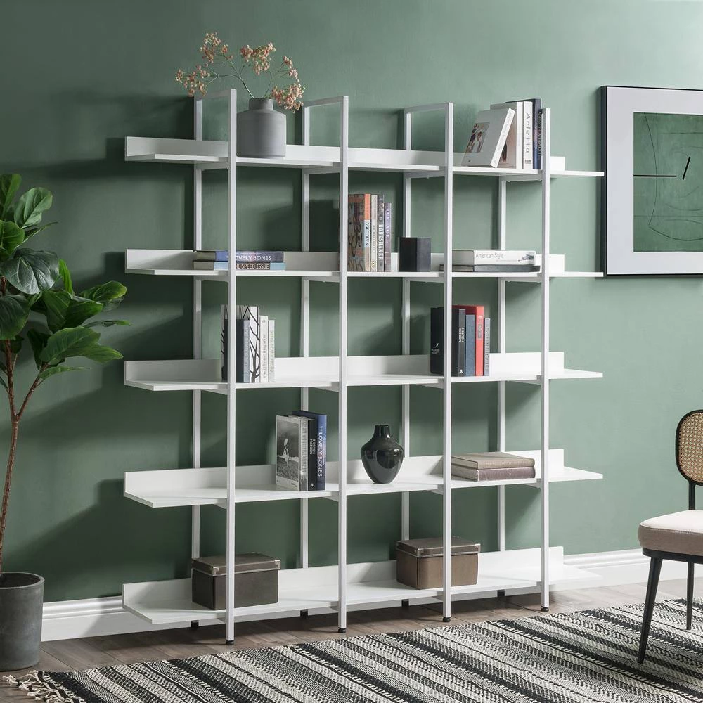 The open design of this bookcase combines the charm of both minimalist and vintage furniture styles. each designed with upright panels to stop things falling off and provides plenty of space to display and storage your books, decorations, plants, and other daily accessories.Constructed with MDF board and practical powder-coated steel frame, this bookshelf is sturdy and durable, whose each shelf can support up to 80lbs, bearing 400lbs in total, giving you a complete solution of storage and decoration. And the thick panel with smooth and water-proof surface makes it convenient for daily clean-up, hassle free.