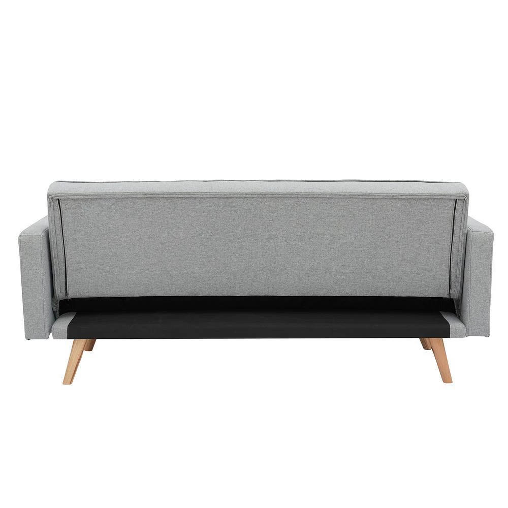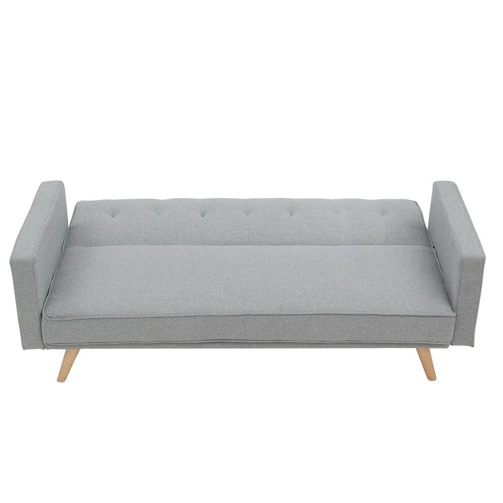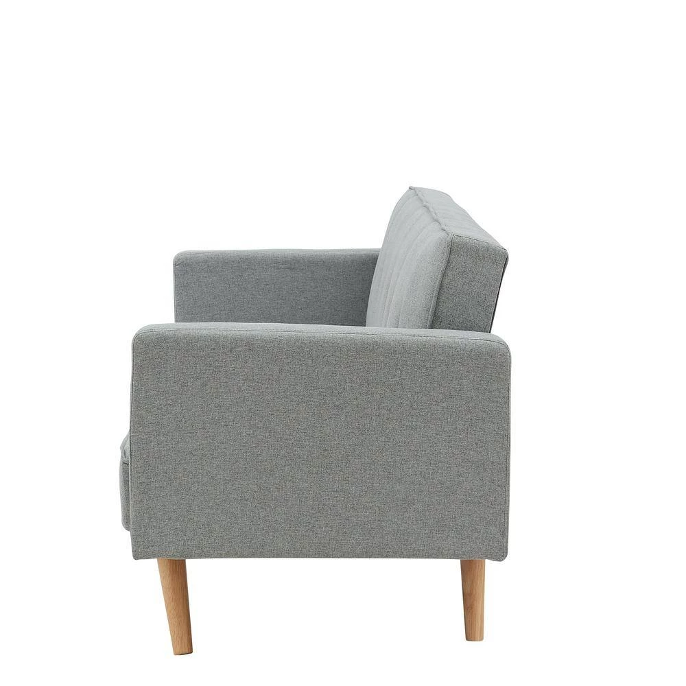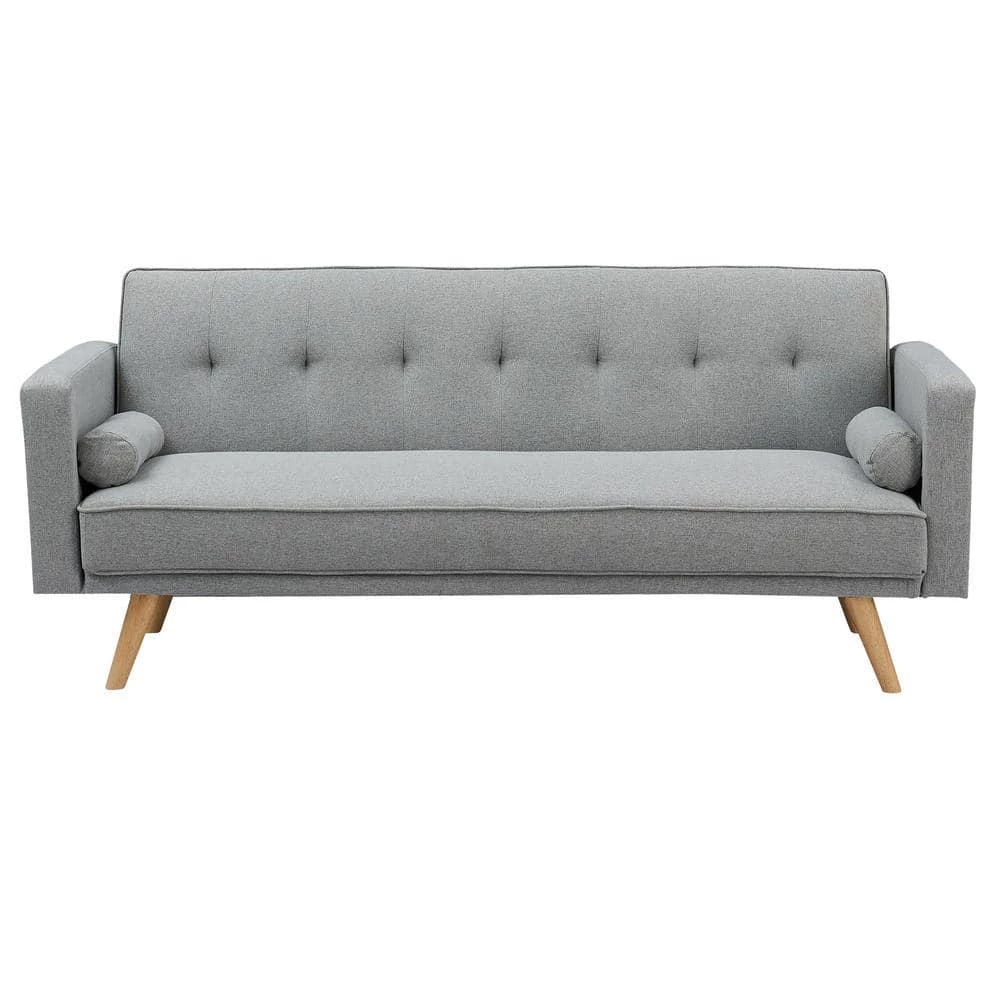 This sofa Tufting back decorates soft fabric for a hint of textural appeal. The split-back design seating can be independently lowered into a lounge or sleep position. This modern style sleeper sofa, while adding a spare sleep space when needed. Its designs with wood frame and square arms and tapered legs for a retro silhouette. The fabric upholstery is filled with foam. The striking thing about this sofa is that it can be converted into a bed to support as you sit or sleep.