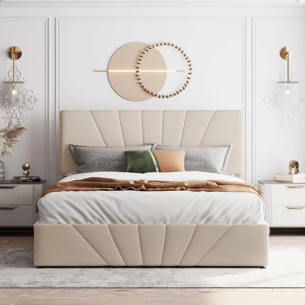 - Upholstered in carefully selected linen fabric, and with decorative details, platform bed not only suits any home decor, but is timeless in its design, soft textile bedhead creates coziness, while single color of design creates versatility