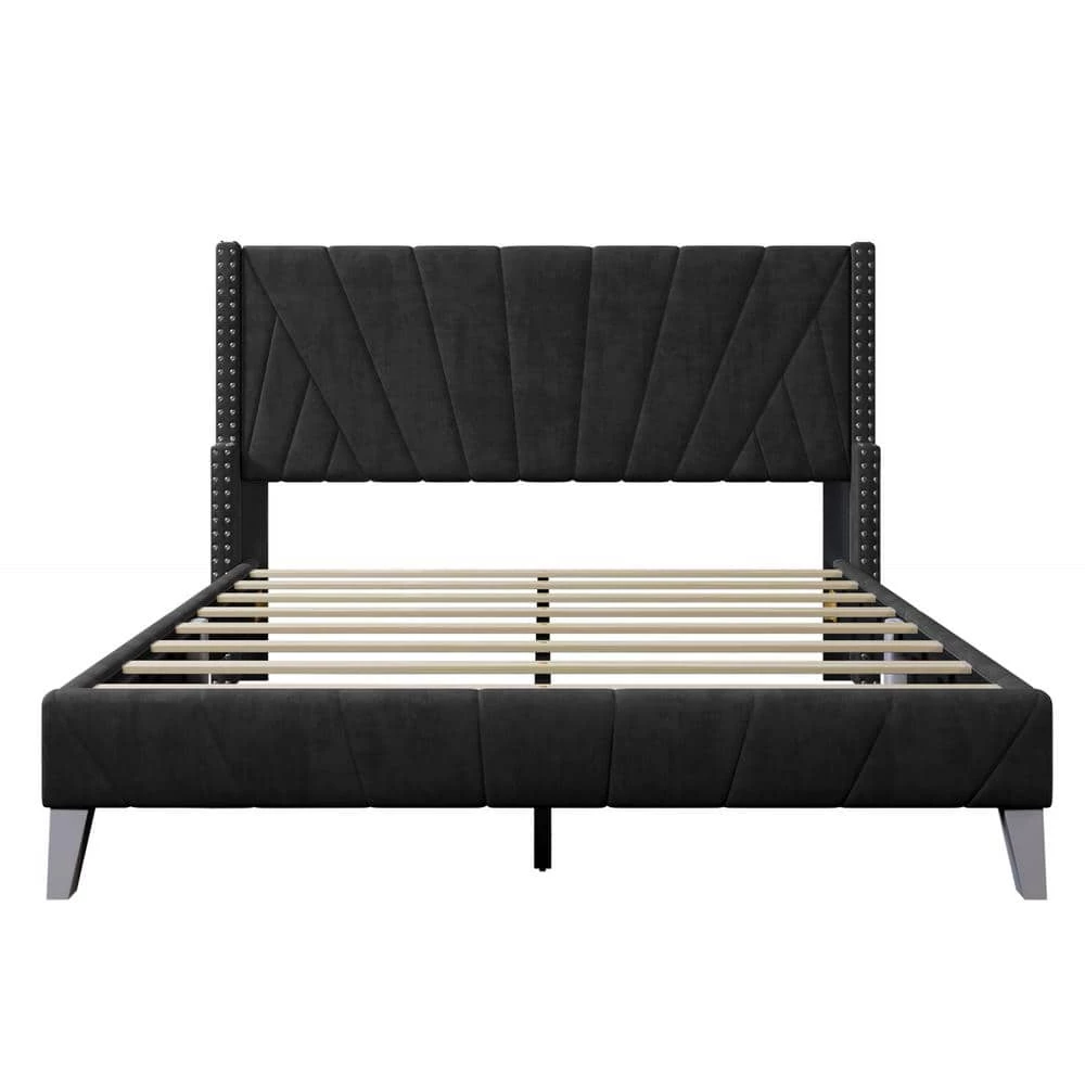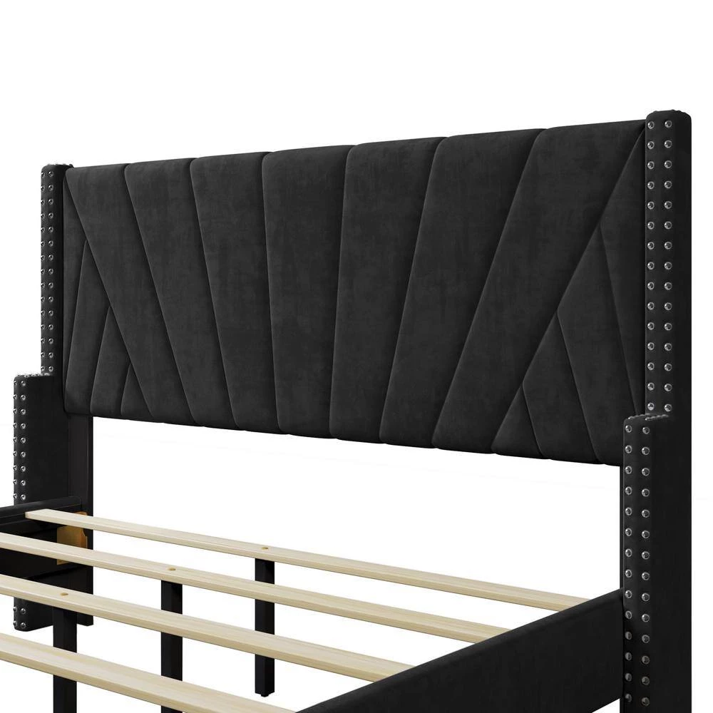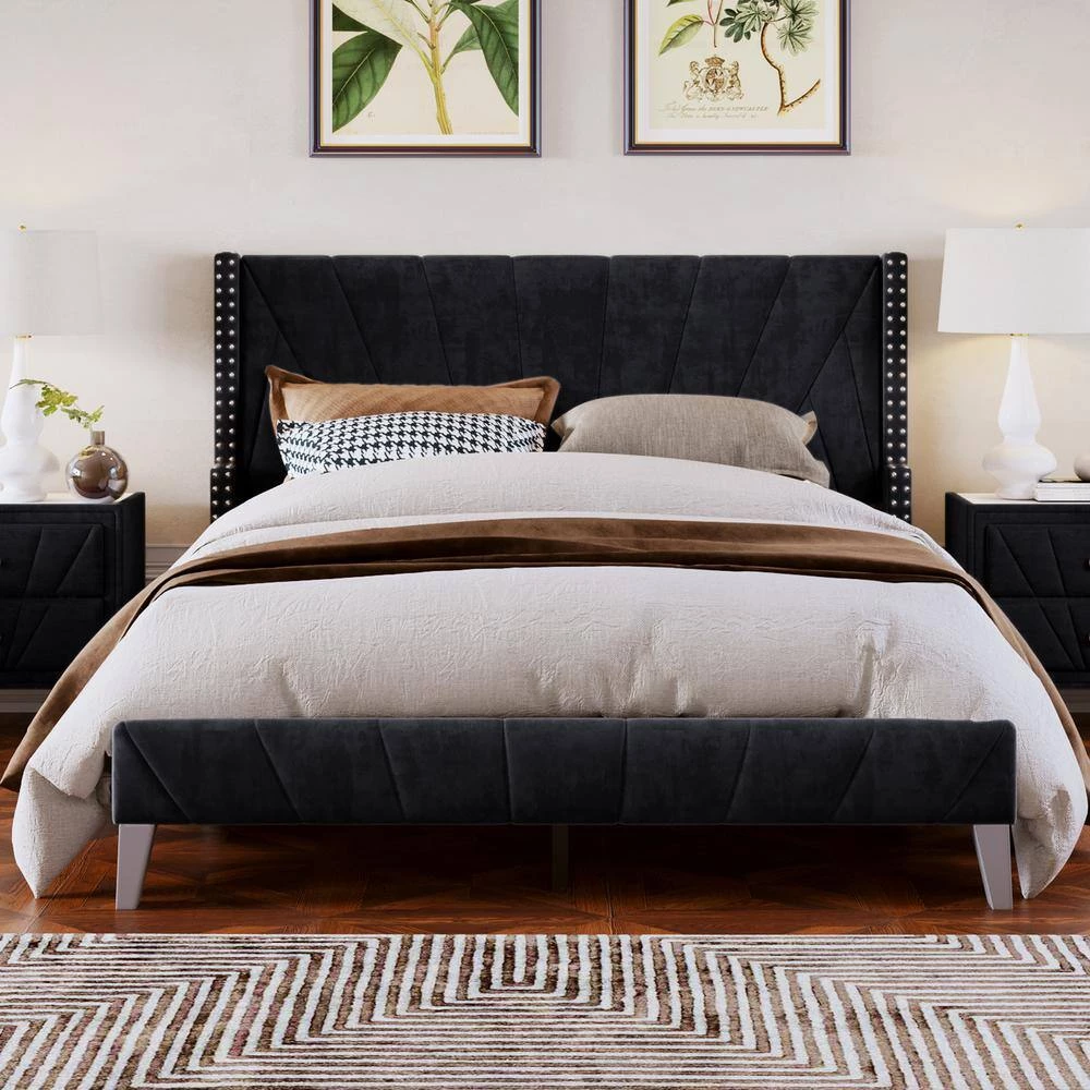 - Upholstered in plush velvet, it is complete with upholstered side rails and a padded queen headboard/footboard, offering supportive comfort while relaxing