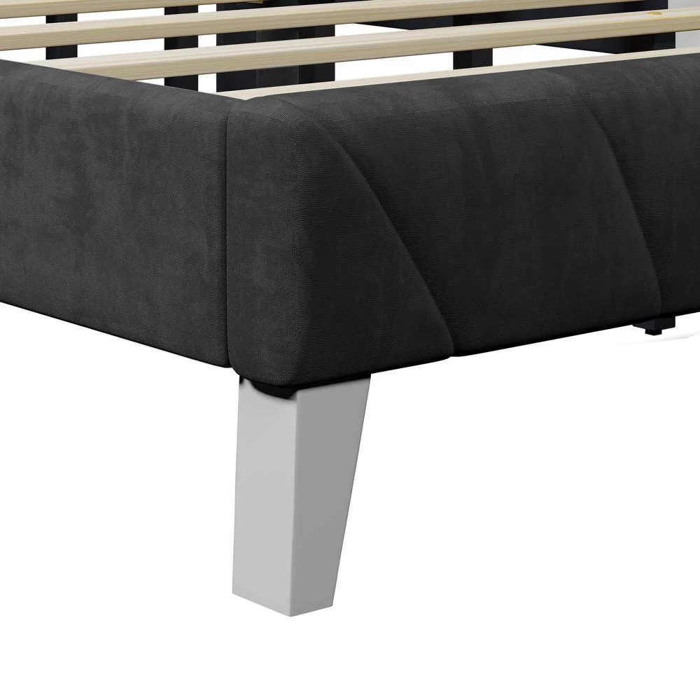 - It’s built with a solid and engineered wood frame and features an understated side rail and footboard with gray solid, tapered wood legs provide a touch of sophistication