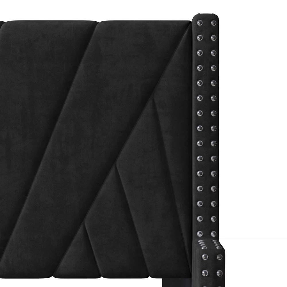 - Tufted bed brings a glam deco presence to your bedroom with its channel tufting, nailhead trim, and unique wingback design