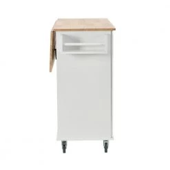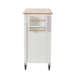 White Kitchen Island Rolling Trolley Cart with Towel Rack Rubber Wood Table Top by ATHMILE