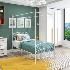 77.95 in. W White Non-upholstered Metal Frame Twin Canopy Bed by ATHMILE
