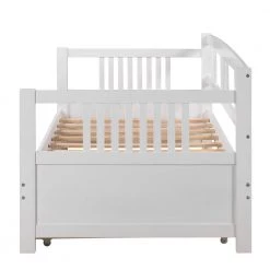 White Wooden Twin Size Daybed with Trundle and 2-Drawers by ATHMILE