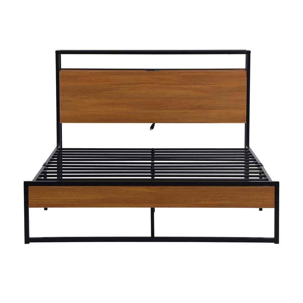 - The combination of metal bed frame and beautiful wooden board brings a natural accent to your home ,Modern rustic style and versatility for many occasions, from large bedrooms to small apartments