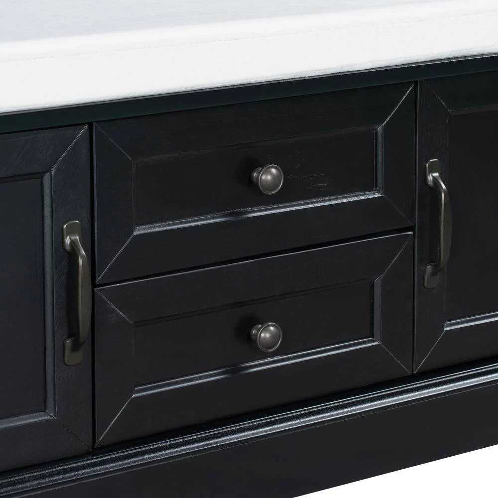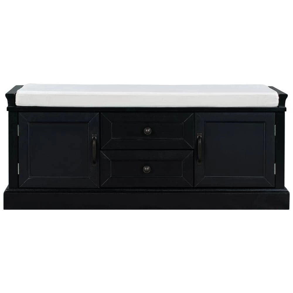 - Storage bench with cushion brings a decorative and functional storage piece to your entryway, foyer, mudroom or laundryroom distressed aluminum drawer handles can add an extra retro touch to your home