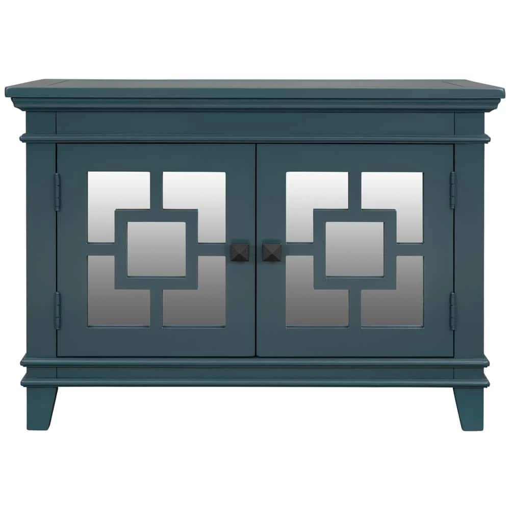 Accent Storage Cabinet Wooden Cabinet with Decorative Mirror Door, Modern Sideboard for Entryway, Living Room, Bedroom.Complete your home hallway, living room or bedroom with this classic 2-door cabinet featuring spacious storage. Crafted with MDF with veneer for top and pine wood for framework, the storage cabinet is solid and durable for long time use. The cabinet provide ideal storage for dishes, books, or board games.