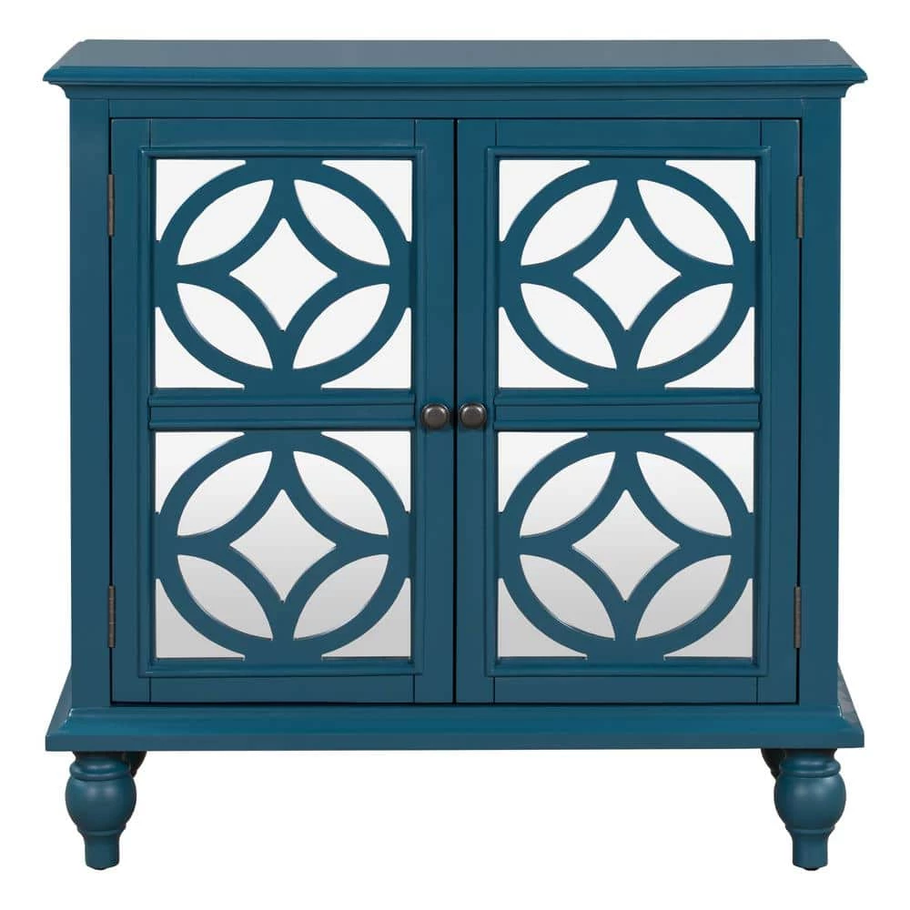 This 2– Door Accent Cabinet with the mirrored doors,attractive and eye-catching,offers added storage in a space-saving design. Constructed with pine and MDF wood, this chest is extremely sturdy and durable and it has a smooth, consistent aesthetic showing it was built for longevity and crafted using high-quality materials. With painted finish, the accent cabinet features a simple yet charming look. The shelf is adjustable to store your favorite decor and accessories. This combination of practical and ornamental design create a beautiful accent console cabinet that will complement any living room, dining room or hallway.