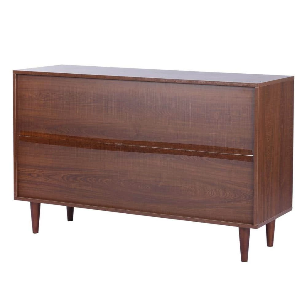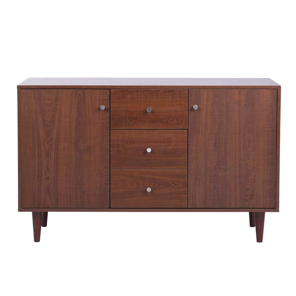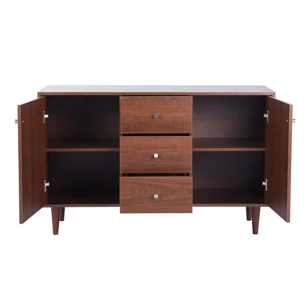 The refined design provides generous storage behind drawers and doors with hidden self-pulls, creating a streamlined look that showcases the distressed charcoal brown finish. Crafted from High-quality MDF; Solid Wood Legs for Reliable Support.Multipurpose cabinet offers plenty of functional storage.