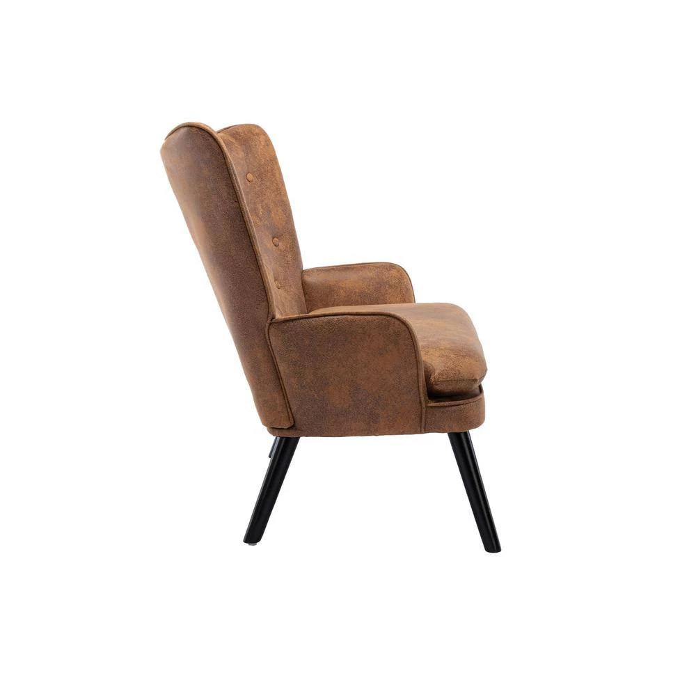 Perfect for rounding out your home with a handy perch, an accent chair like this is a great option curling up with a Good book or settling in for a TV binge, while also lending your space an on-trend look. Crafted from solid wood, and manufactured wood frame. Round arms, a camelback, and button tufting round this piece out with eye-catching mid-century-inspired touches.