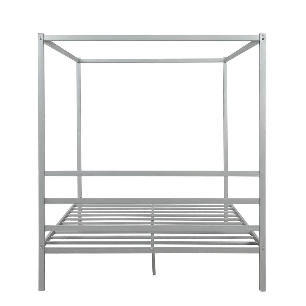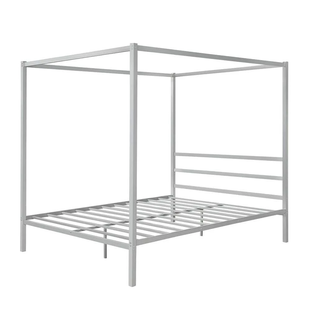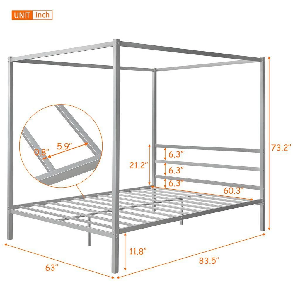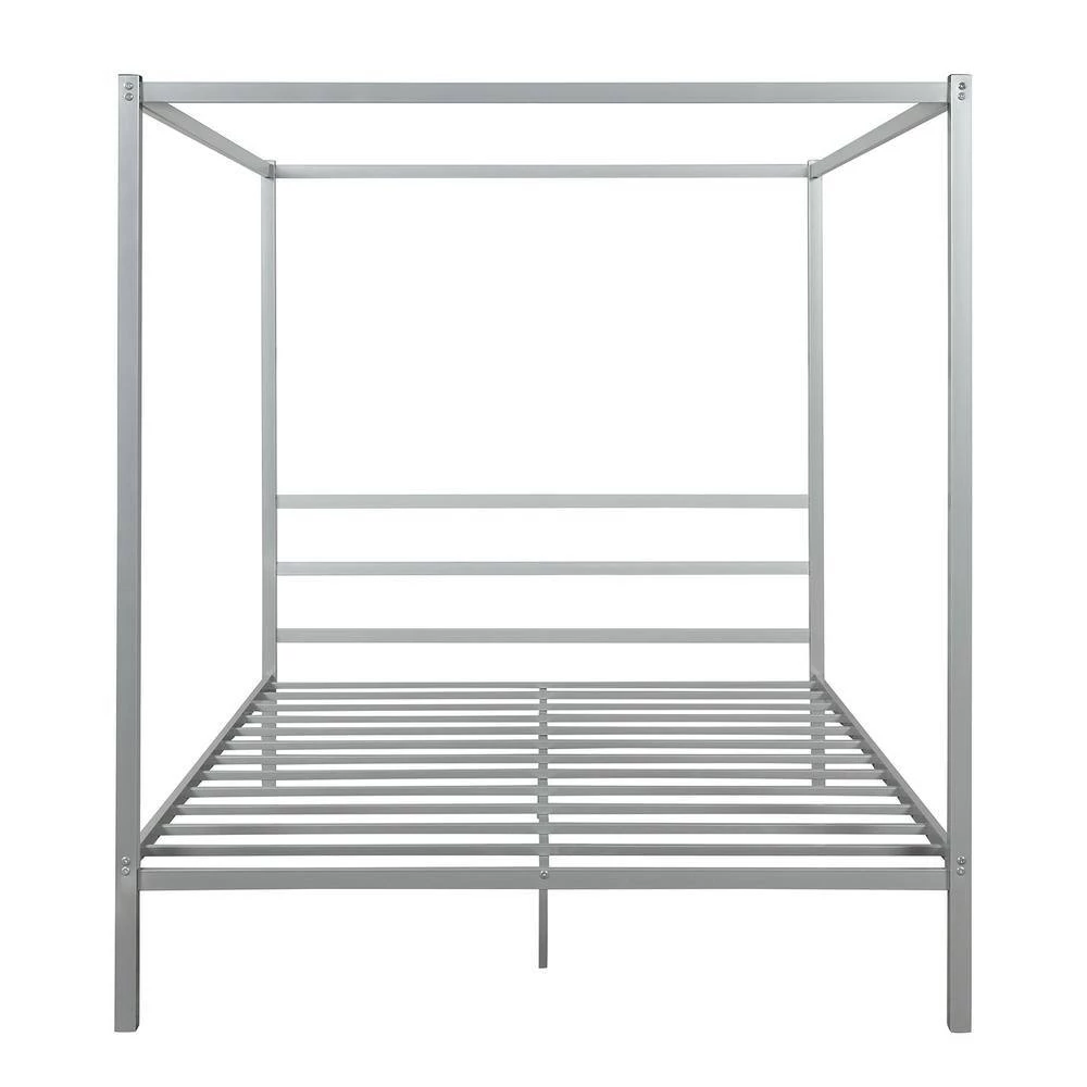 - Canopy bed is an eye-catching piece with a modern design that will make perfect centerpiece for your bedroom, with a minimalist headboard and footboard, it is crafted with a sturdy metal construction, it includes secured metal slats without needing a box spring