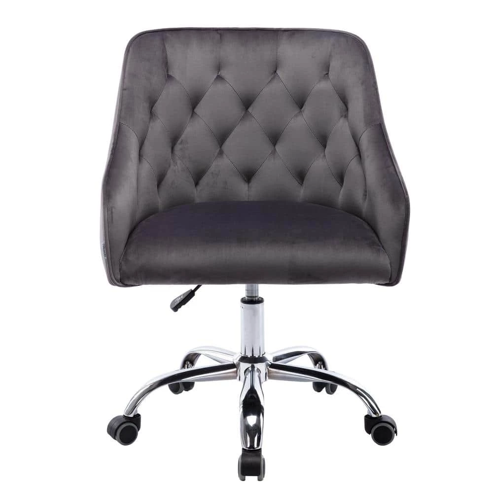 Dark Gray Velvet Upholstered Swivel Task Chair with Sloped Arm by ATHMILE