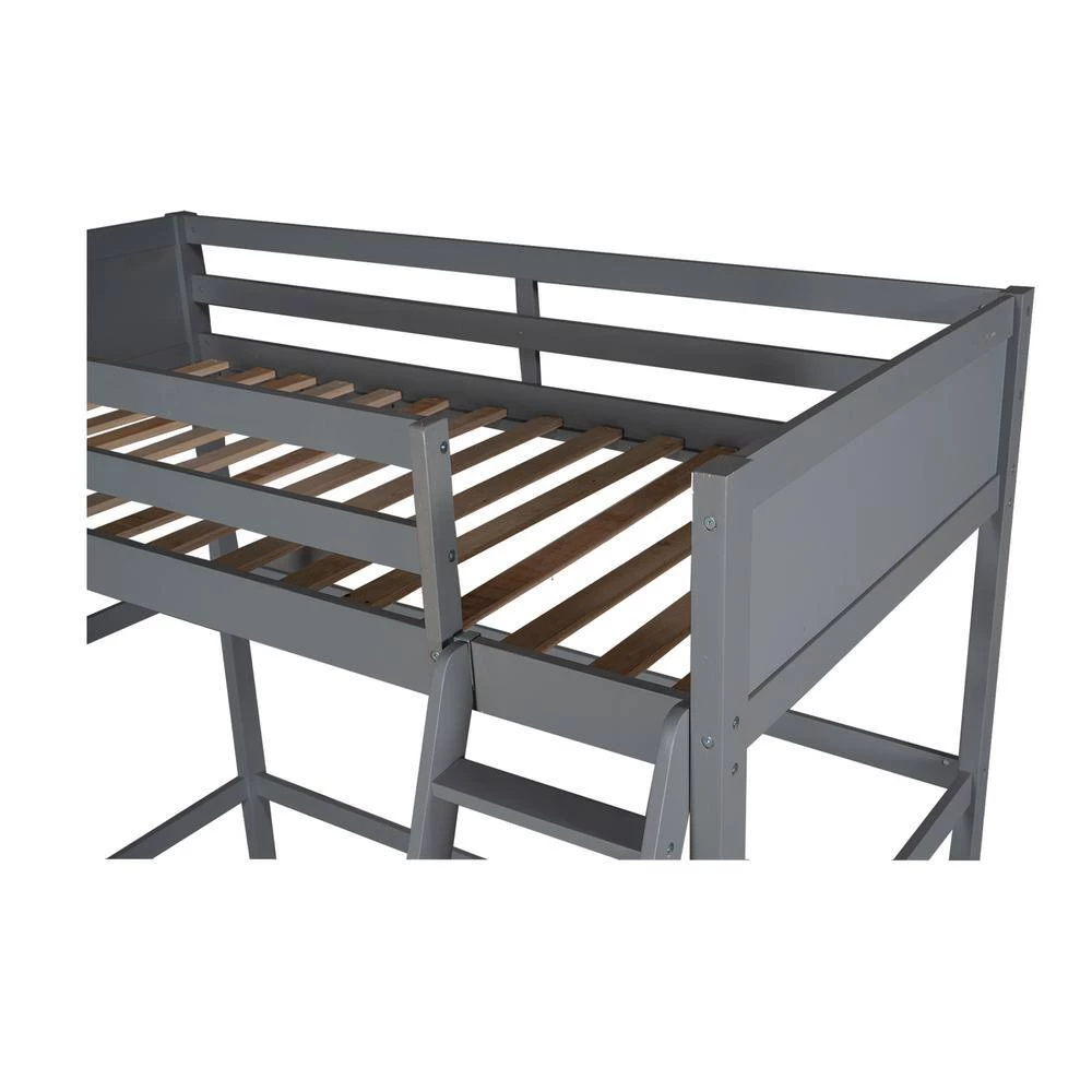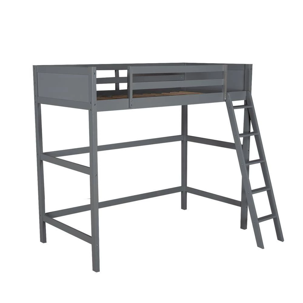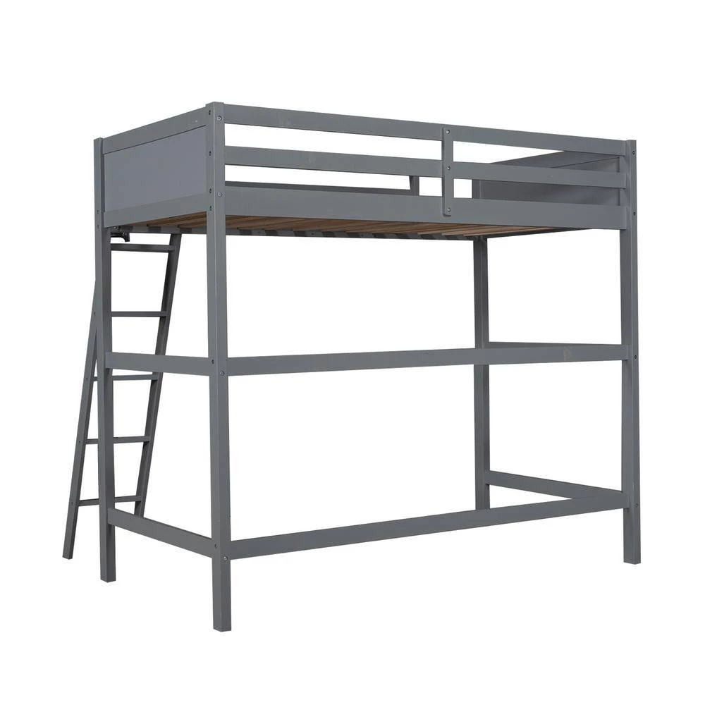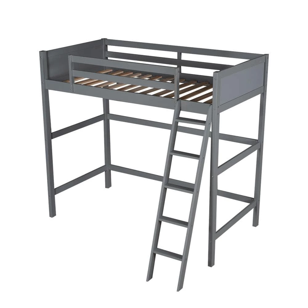 This Solid Wood Twin Size Loft bed with Ladder is a minimalistic, stylish bed frame that works well with a variety of decorating styles and makes it easy for you to enhance and improve your space. Featuring strong, solid pine wood and eight supporting slats, this bed is built to last, ensuring it will accompany you for many years. The beautiful finish lends an elegant look makes this bed frame an excellent addition to any bedroom. do not miss the chance take it home today. What’s more, this product arrives with a slat kit, do not miss the chance take it home today.