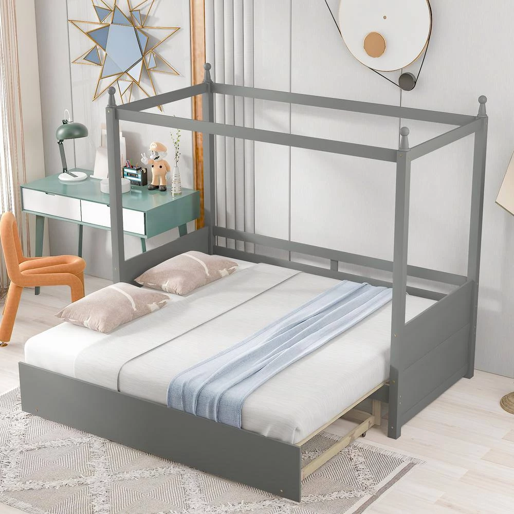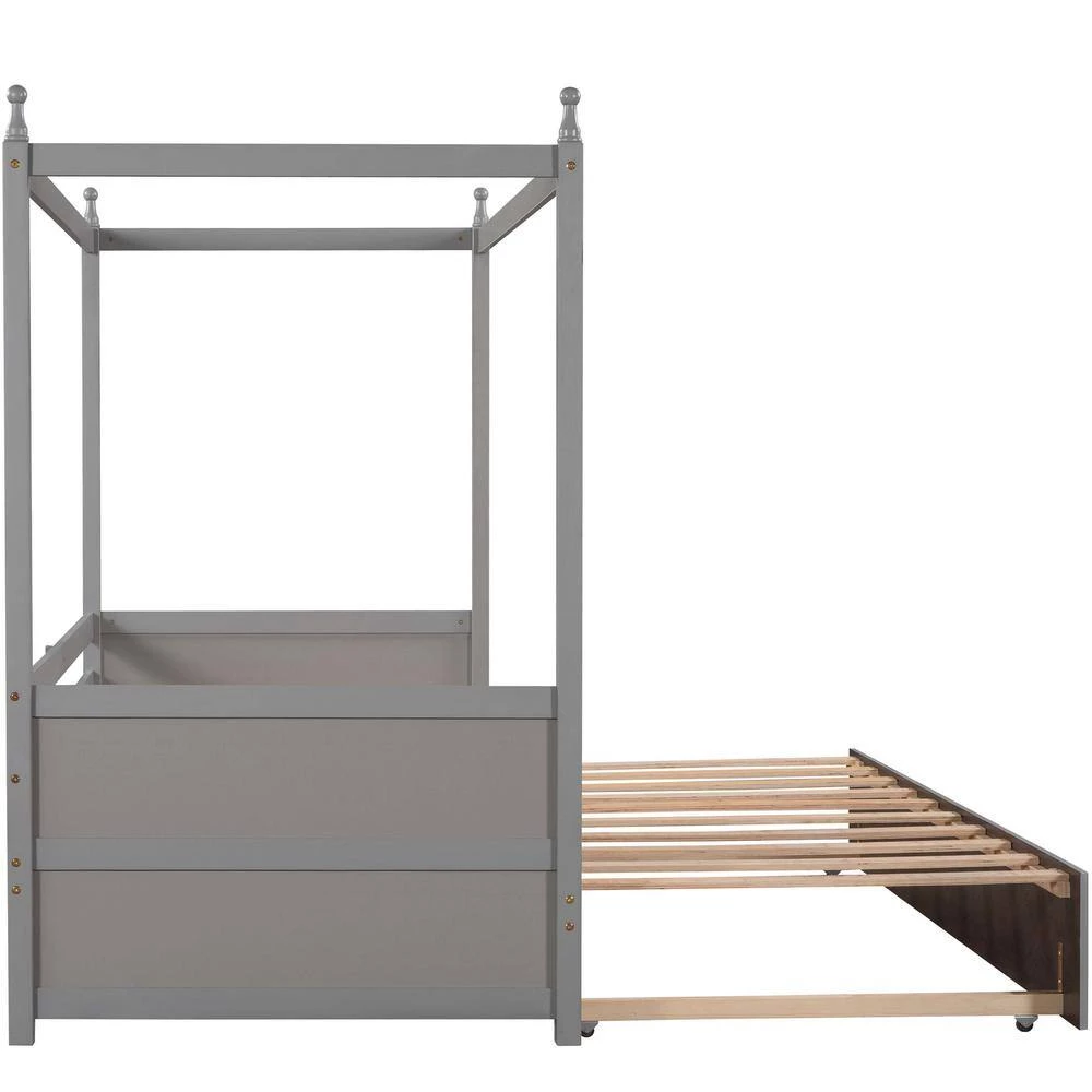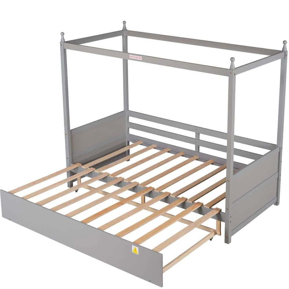 Give you the freedom to host friends in your own space with this versatile twin sized daybed, featuring a rolling design to become a double twin size bed. Crafted from pine wood and MDF, this clean lined design features an canopy frame with headboard and footboard for a hint of warmth. Thanks to this piece’s neutral tones, it’s sure to blend easily with any color palette your picks.