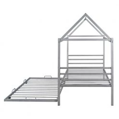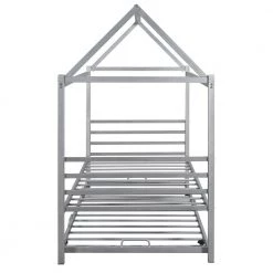 Silver Twin Size Metal House Shape Platform Bed with Trundle by ATHMILE