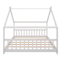 White Full Size Metal House Bed with Slatted Support by ATHMILE