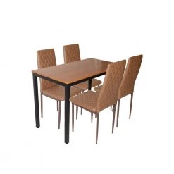 5-Piece Rustic Brown Wood Top Dining Table Set (Seats 4) by ATHMILE