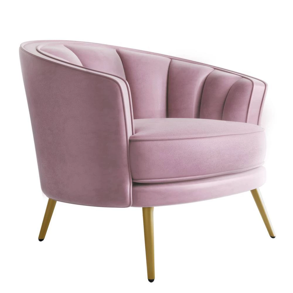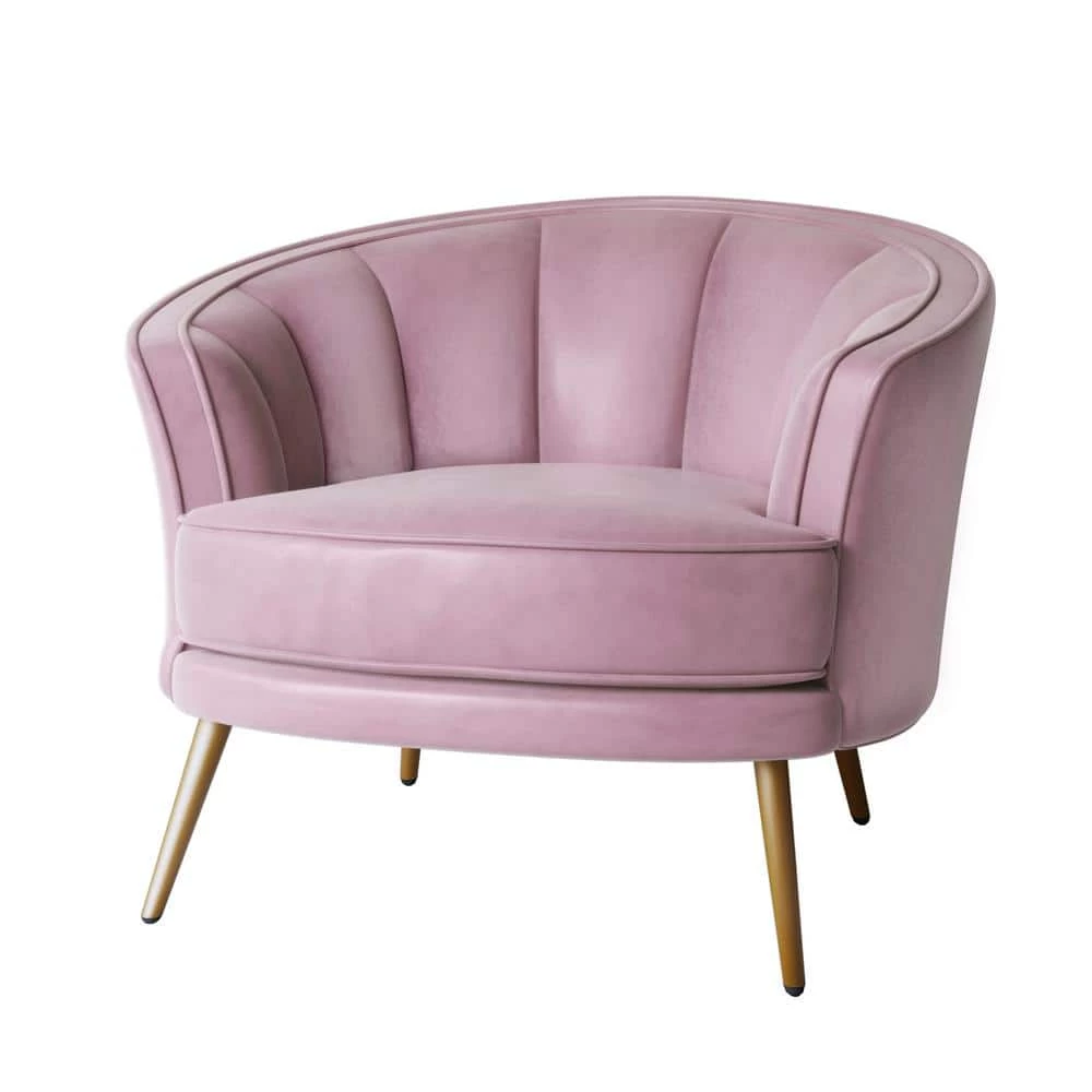 The barrel chair features a seashell-inspired back and gold-finished legs for some contemporary glam style in your living room or den. It has a solid and engineered wood frame, resting on four metal legs for a bit of shining contrast. This chair showcases velvet upholstery to give your space a luxe look, while foam-filled cushioning provides extra support when you are curled up with a good book or enjoying some late-night TV. Vertical channel tufting and distinctive piping round out this modern piece.