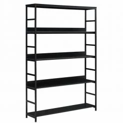 70.87 in. Wide Black MDF 5 Shelf Standard Bookcase by ATHMILE