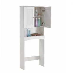White Bathroom Floor Storage Cabinet with Double Door and Adjustable Shelf by ATHMILE